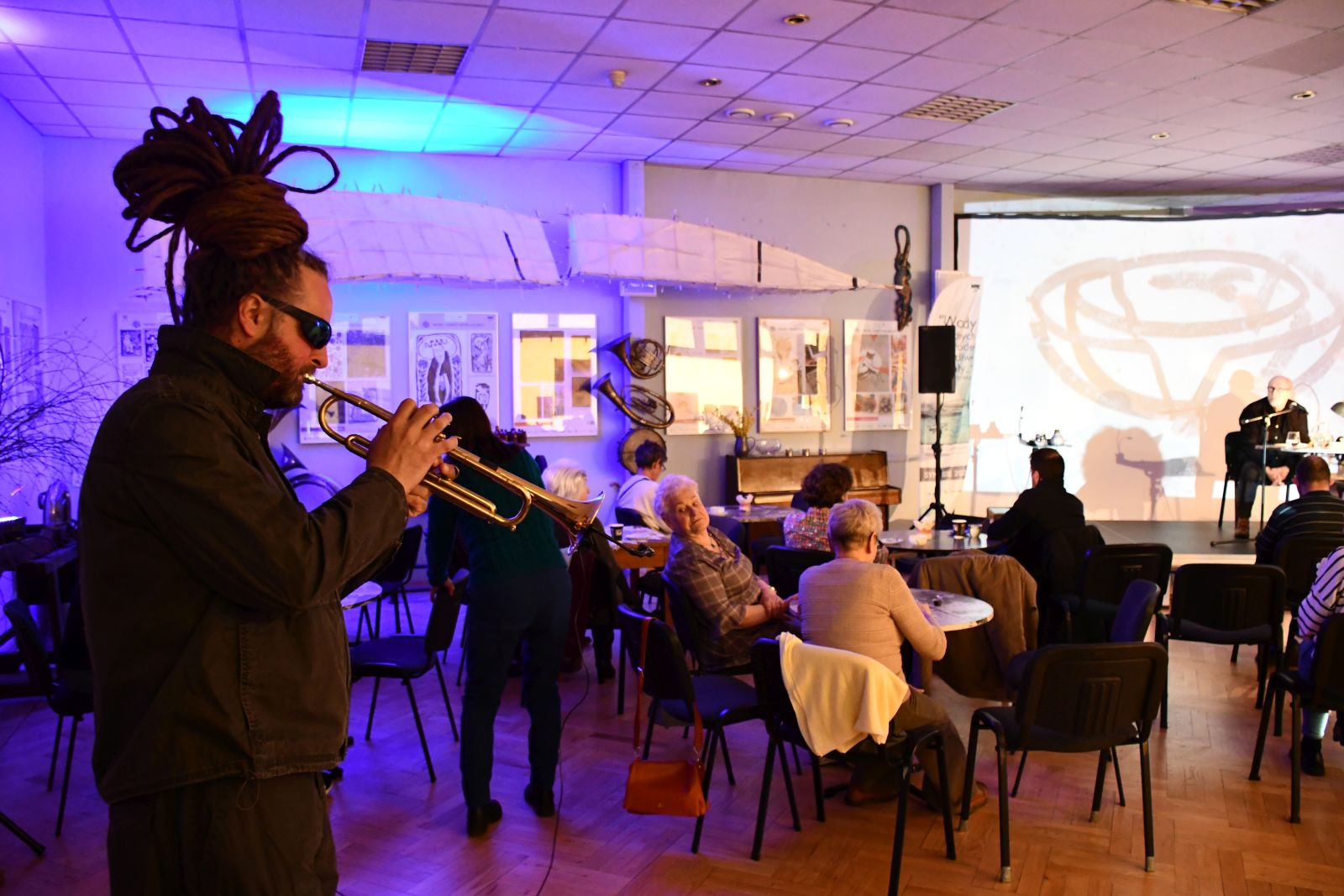 MARCIN MARKIEWICZ / COZERSKI (born in 1977) – Trumpeter, vocalist, composer, and lyricist. Cultural animator, photographer, and postman. Born in Czeladź. He performs in many musical and artistic projects, both live and in the studio. He creates music for performances, vernissages, silent films, and produces recordings. Improvisation and spontaneity are the hallmarks of his work. Co-founder and leader of the band KoNoPiAnS (1996). He collaborates with the Grotowski Institute in Wrocław. He co-creates the trio PIKSELE and BRZOSKA KOLEKTYW.
