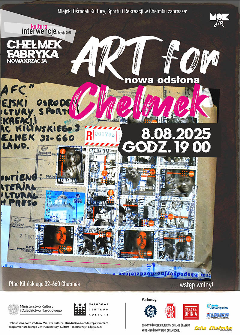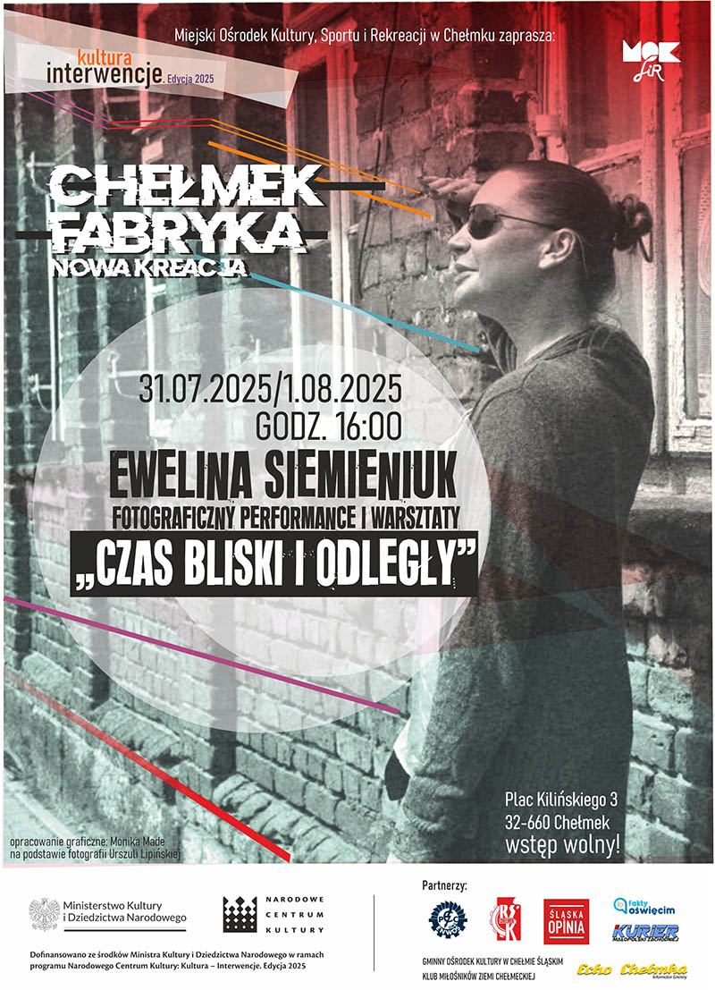 Miejski Ośrodek Kultury, Sportu i Rekreacji w Chełmku na przestrzeni kilku następnych miesięcy będzie realizował autorski projekt pt.: „Chełmek Fabryka – nowa kreacja”, w ramach programu Narodowego Centrum Kultury, Kultura – Interwencje. Edycja 2025., do którego otrzymał dofinansowanie w wysokości 24 tys. zł, ze środków Ministra Kultury i Dziedzictwa Narodowego. Instytucja znalazła się na liście 232 beneficjentów, wybranych spośród rekordowej liczby 2730 podmiotów, składających wniosek. Głównym celem zadania jest umożliwienie mieszkańcom szerokiego dostępu do uczestnictwa w kulturze, poprzez organizację niekonwencjonalnych działań artystycznych, bazujących na lokalnych tradycjach. Zespół ośrodka zaplanował szereg warsztatów, wykładów i wydarzeń pełnych pasji, kreatywności i dobrej energii, które odbywać się będą na terenie miasta do końca października br. Zaproszeni do współpracy artyści to m. in. Robert Kuśmirowski, teatr „Fabryka Kultury”, Mirosław Maszlanko, czy Ewelina Siemieniuk. Zaplanowane wydarzenia przewidują atrakcje zarówno dla dzieci, jak i dla dorosłych. Mieszkańców czekają warsztaty dokumentacji fotograficznej i animacji z Tomaszem Sikorą, plenerowe warsztaty i wspólny performance nad brzegiem rzeki Przemszy z Cecylią Malik, spotkania autorskie z prof. Irmą Koziną, Małgorzatą Lebdą, Miłoszem Biedrzyckim, Robertem „Rybą” Rybickim, prezentacja twórczości prof. Sybilii Skałuby, Johna Lectera oraz wystawy „Art for Chelmek”. Udział we wszystkich wydarzeniach będzie bezpłatny. Zapraszamy do śledzenia programu i aktywnego uczestnictwa.