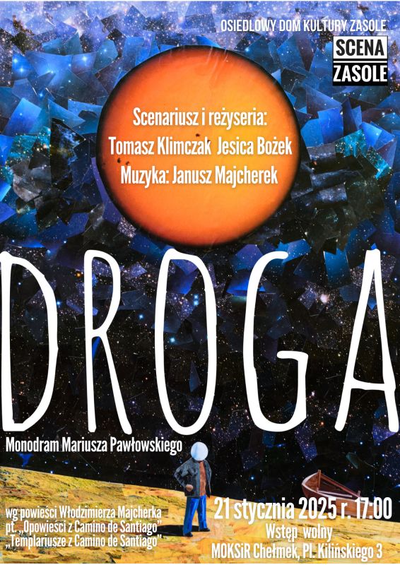 Zapraszamy Państwa na monodram pt. „Droga” w wykonaniu Mariusza Pawłowskiego ze „Sceny Zasole” z Osiedlowego Domu Kultury Zasole w Oświęcimiu.