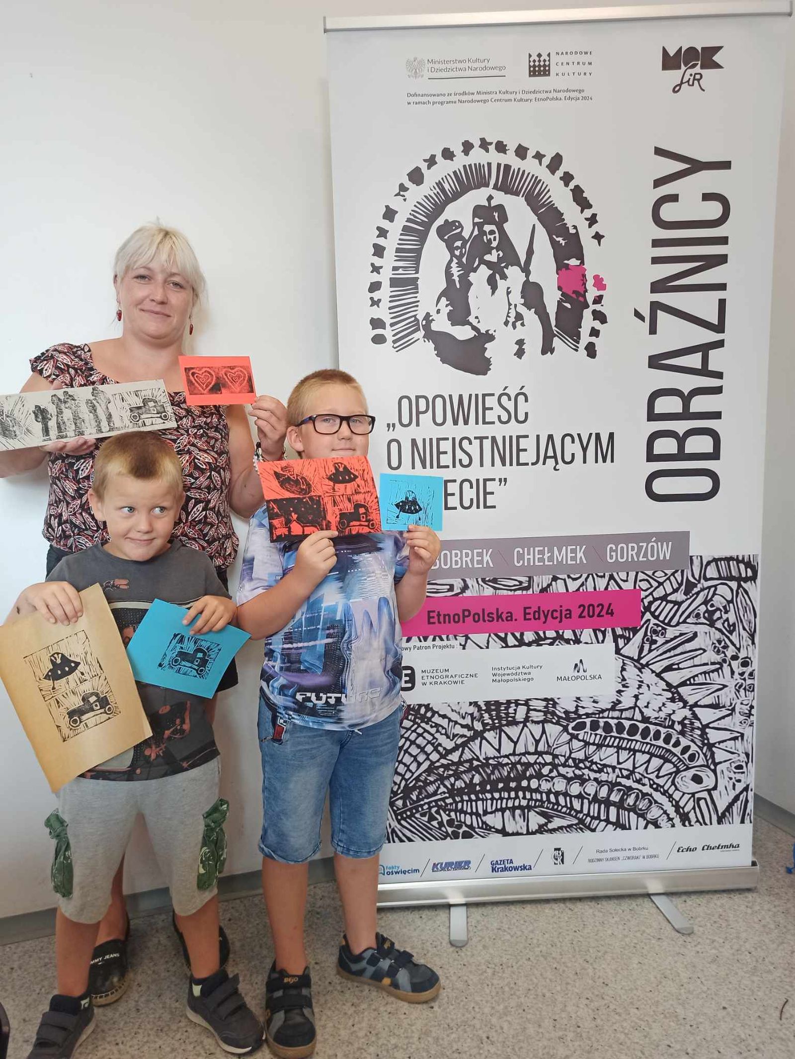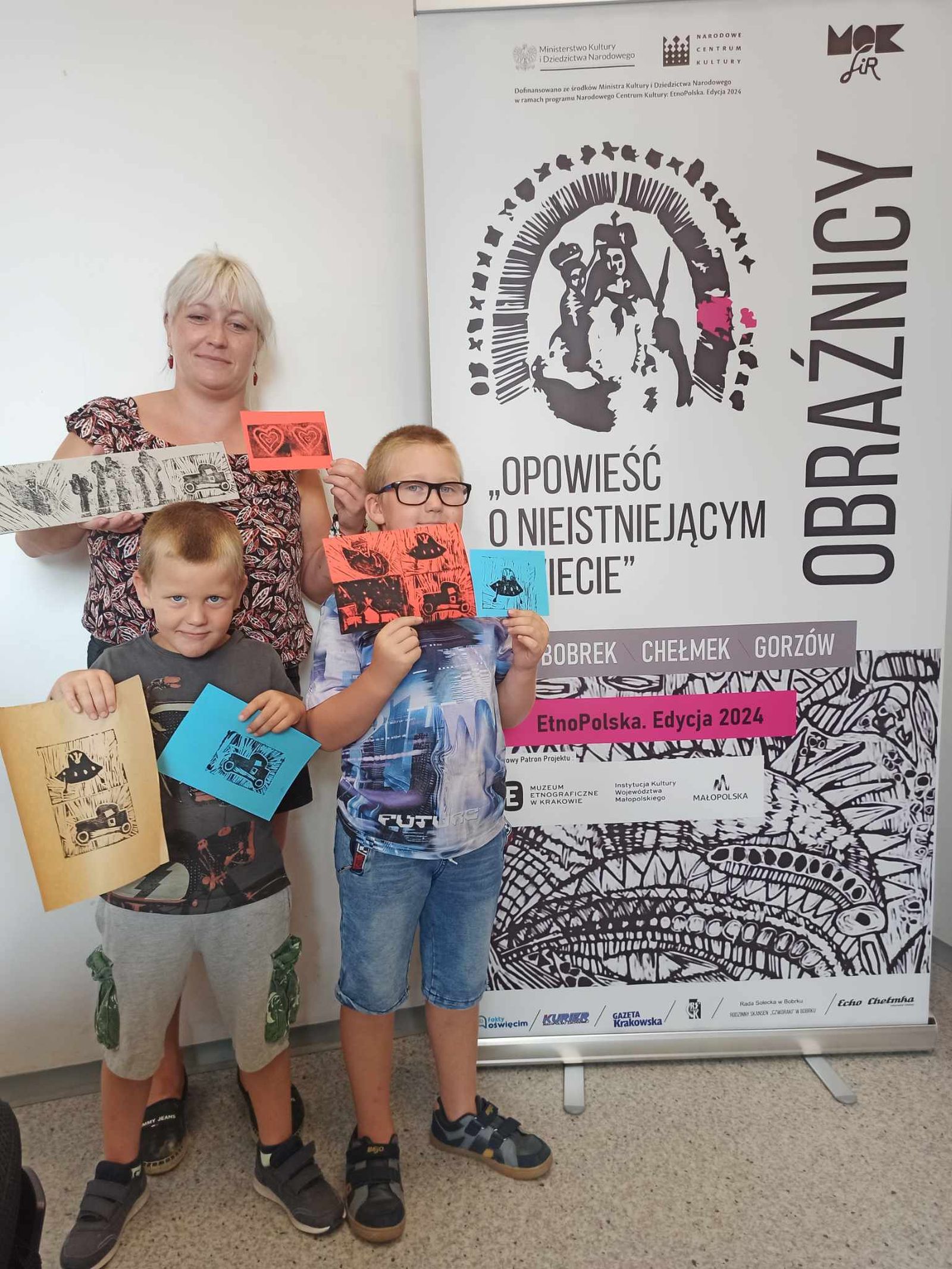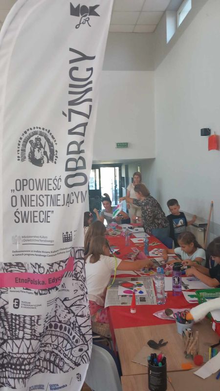 Projekt MOKSiR w Chełmku pt. „Obraźnicy – opowieść o nieistniejącym świecie”. Dofinansowano ze środków Ministra Kultury i Dziedzictwa Narodowego w ramach programu Narodowego Centrum Kultury EtnoPolska. Edycja 2024