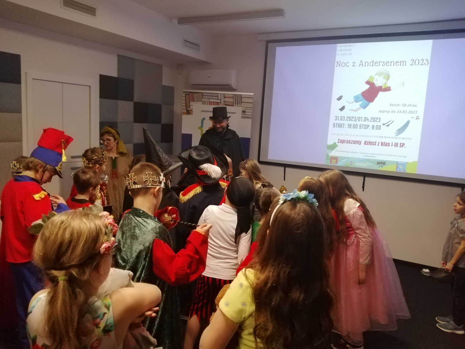31 marca 2023r Biblioteka Publiczna MOKSIR w Chełmku dołączyła do grona organizatorów międzynarodowej imprezy pn. „Noc z Andersenem”. To wspólne wydarzenie Klubu bibliotek dziecięcych SKIP (Związek Bibliotekarzy i Pracowników Informacji). W bibliotekach w Polsce, Czechach, na Morawach oraz w bibliotekach na Słowacji i w Sloveniji wszędzie tam zorganizowano to niecodzienne, całonocne wydarzenie promujące czytelnictwo z okazji Międzynarodowego Dnia Książki dla Dzieci, które obchodzone jest w wielu krajach świata w dniu urodzin najsławniejszego autora baśni, Hansa Christiana Andersena. Urodzony 218 lat temu jest autorem jednych z najpiękniejszych bajek, które uwielbiają zarówno mali jak i starsi czytelnicy na całym świecie.