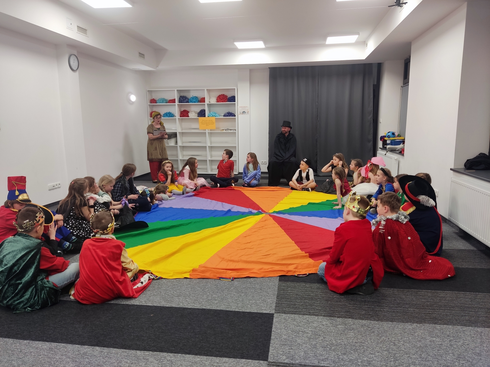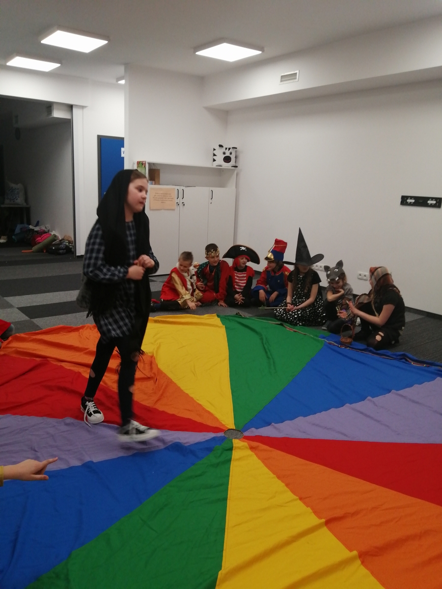 Celem naszego „nocowania” było m.in. zainteresowanie dzieci lekturą, rówieśnicza integracja i pokazanie uroku wspólnego głośnego czytania baśni. Wśród atrakcji, które czekały na uczestników tej magicznej nocy były m.in. warsztaty kuglarskie połączone z nauką żonglerki z elementami pedagogiki cyrku. Spotkanie z Andersenem przy urodzinowym torcie, zabawy z chustą klanza, nocne szaleństwa w „Kulkowni” oraz spacer po bibliotece w poszukiwaniu skarbu. O poranku udaliśmy się przed bibliotekę, by zasadzić symbolicznie baśniowe drzewko.