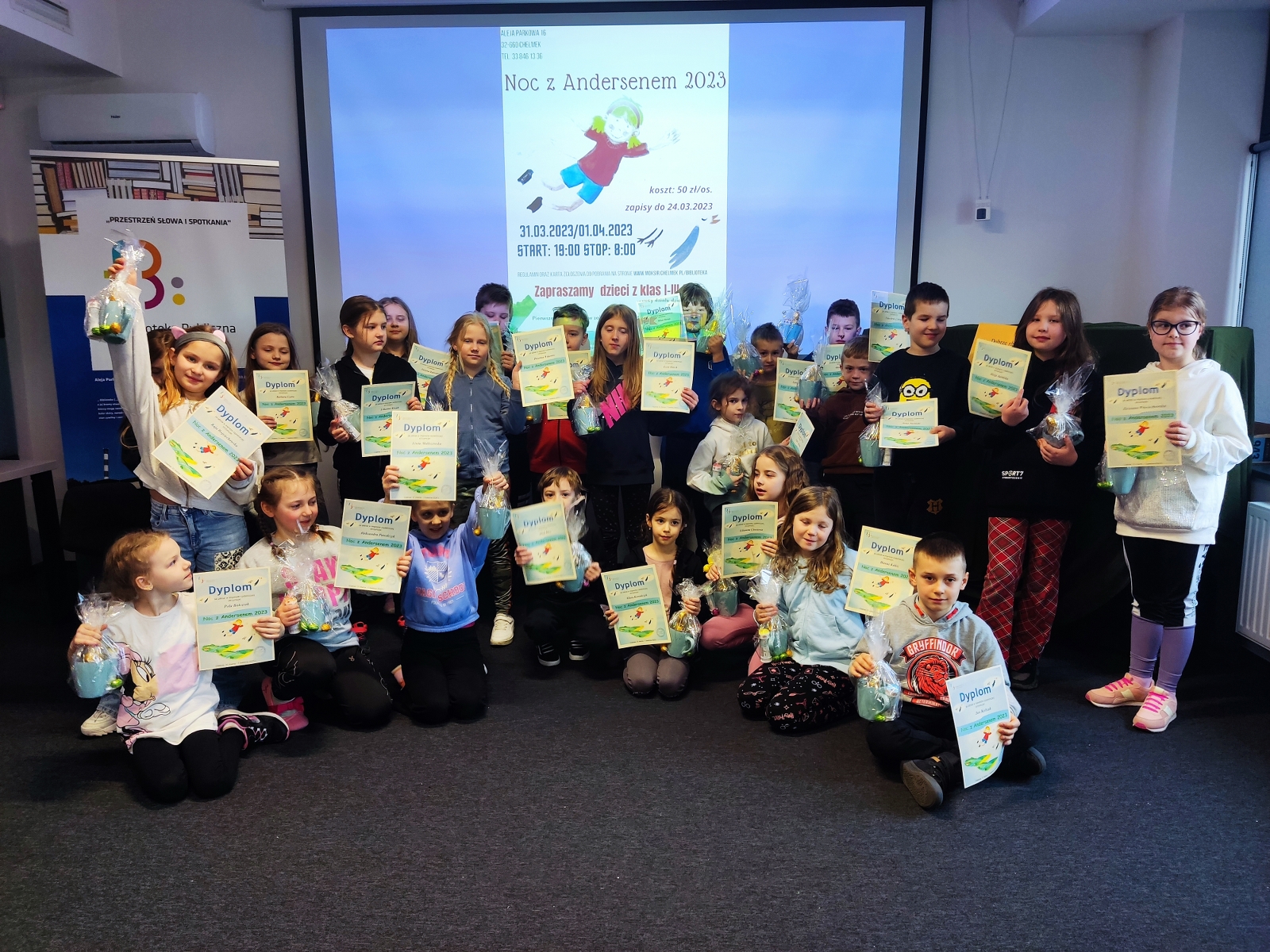 Noc z Andersenem zakończyliśmy 01 kwietnia 2023 o godz. 8.00. W wydarzeniu wzięło udział 25 dzieci w wieku od 7 do 11 lat.