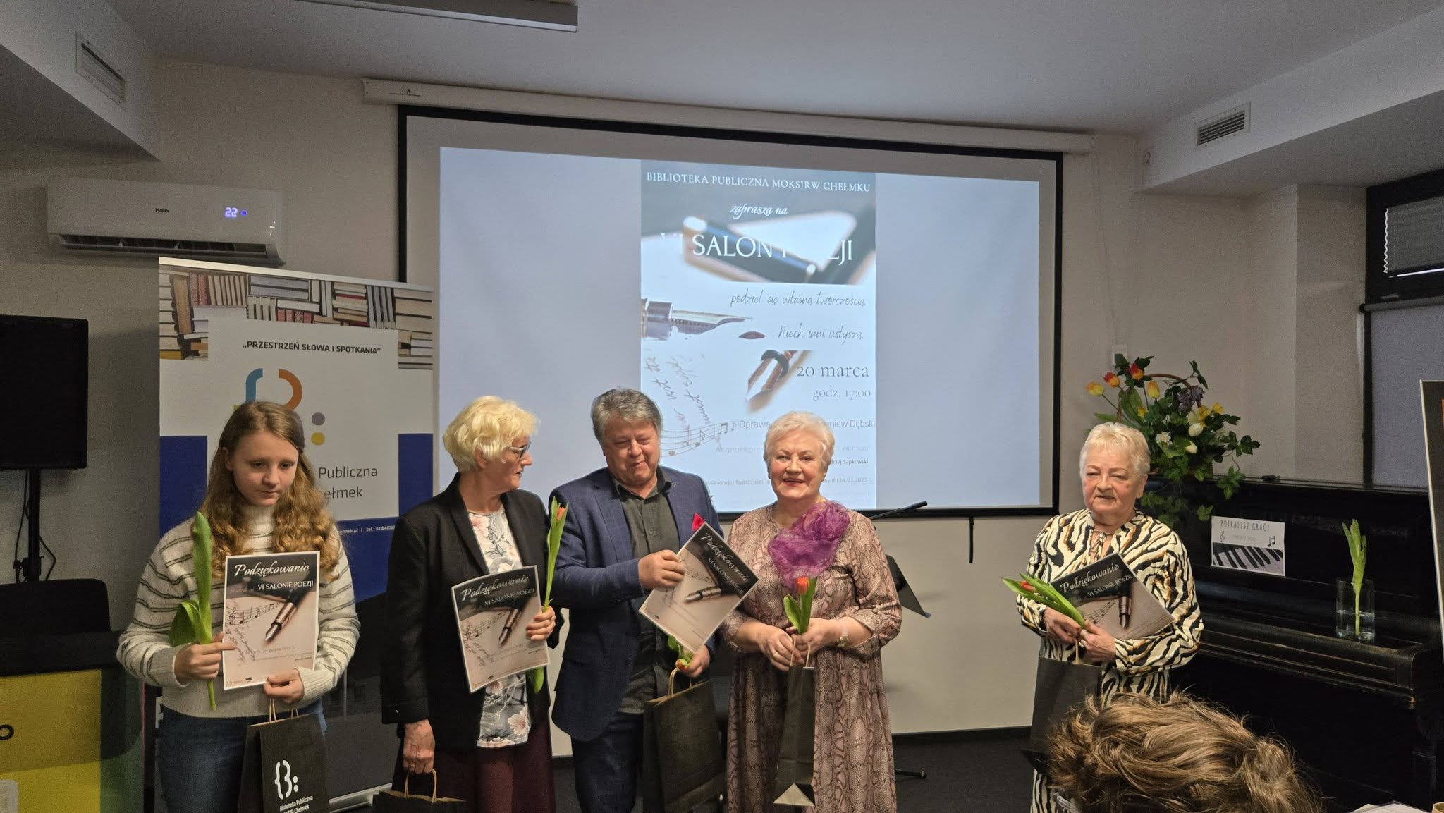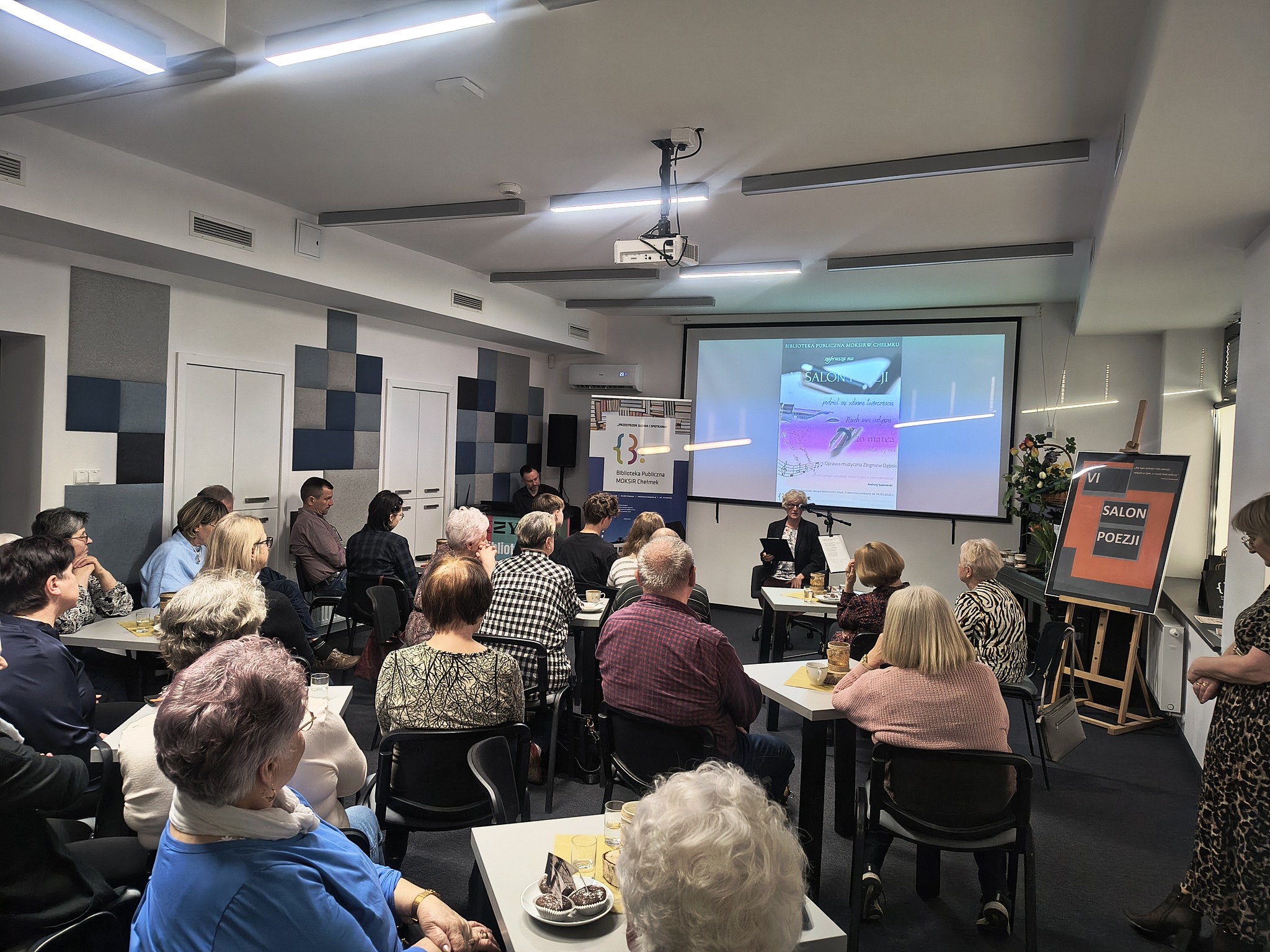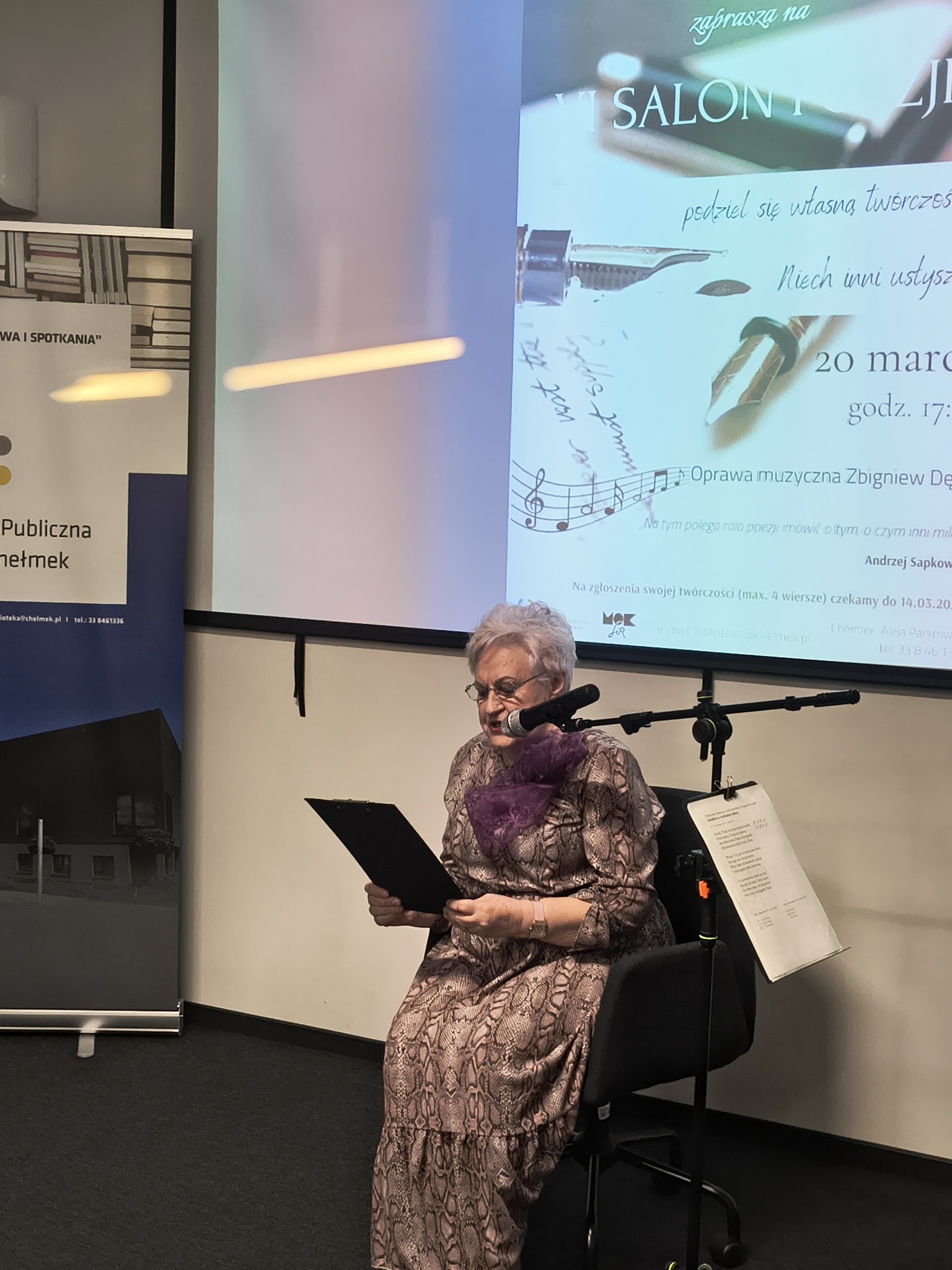 Warto w tym dniu sięgnąć po ulubione strofy lub spróbować własnych sił w poetyckiej twórczości! I tak podczas wczorajszego Salonu Poezji w Biblioteka Publiczna MOKSiR w Chełmku licznie zgromadzona publiczność miała okazję wysłuchać utworów Marianna Sitek Józefa Ostrowska Jadwigi Dombkowskiej, Kamili Drąg oraz Wiesława Niemczyka. Ponadto zaprezentowano także wiersze nieobecnych poetów podczas spotkania – Walentyny Iwanek i Mirosława Trybusia.