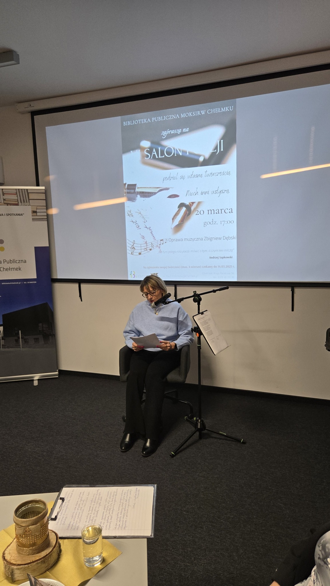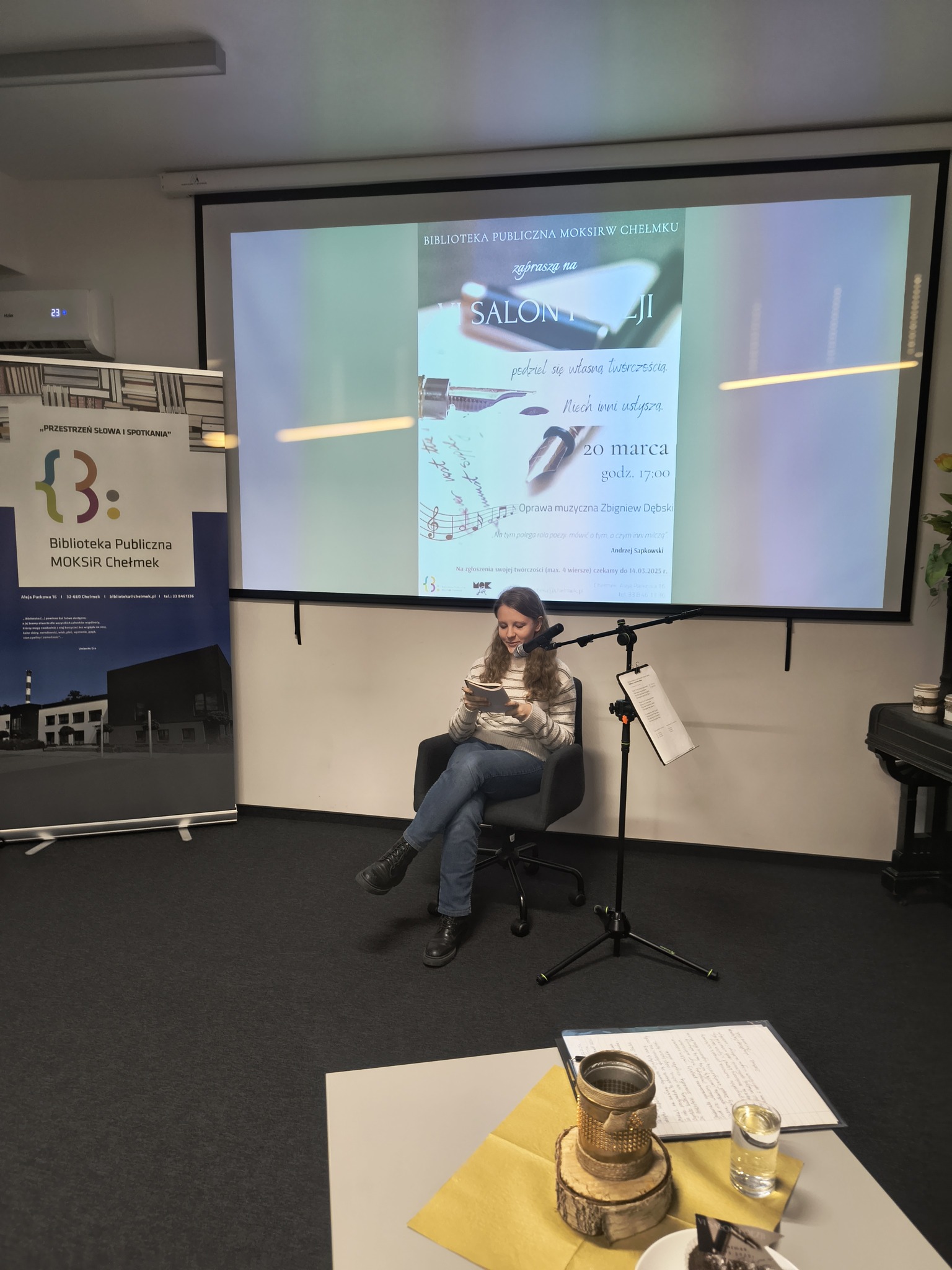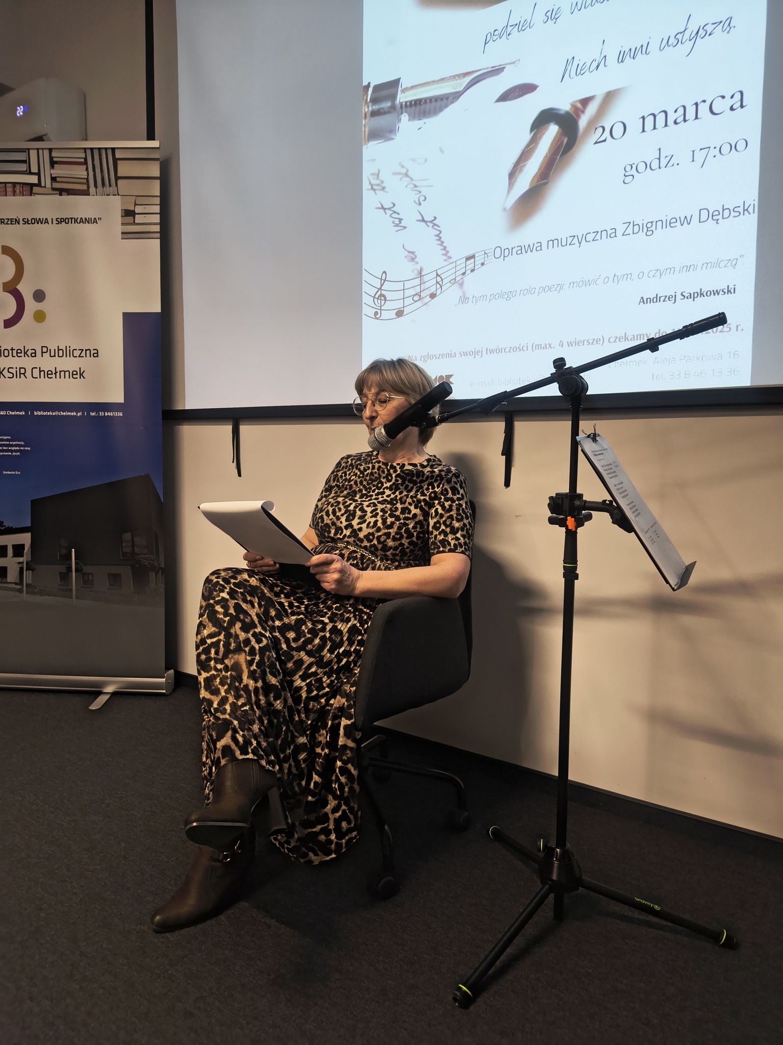 Warto w tym dniu sięgnąć po ulubione strofy lub spróbować własnych sił w poetyckiej twórczości! I tak podczas wczorajszego Salonu Poezji w Biblioteka Publiczna MOKSiR w Chełmku licznie zgromadzona publiczność miała okazję wysłuchać utworów Marianna Sitek Józefa Ostrowska Jadwigi Dombkowskiej, Kamili Drąg oraz Wiesława Niemczyka. Ponadto zaprezentowano także wiersze nieobecnych poetów podczas spotkania – Walentyny Iwanek i Mirosława Trybusia.