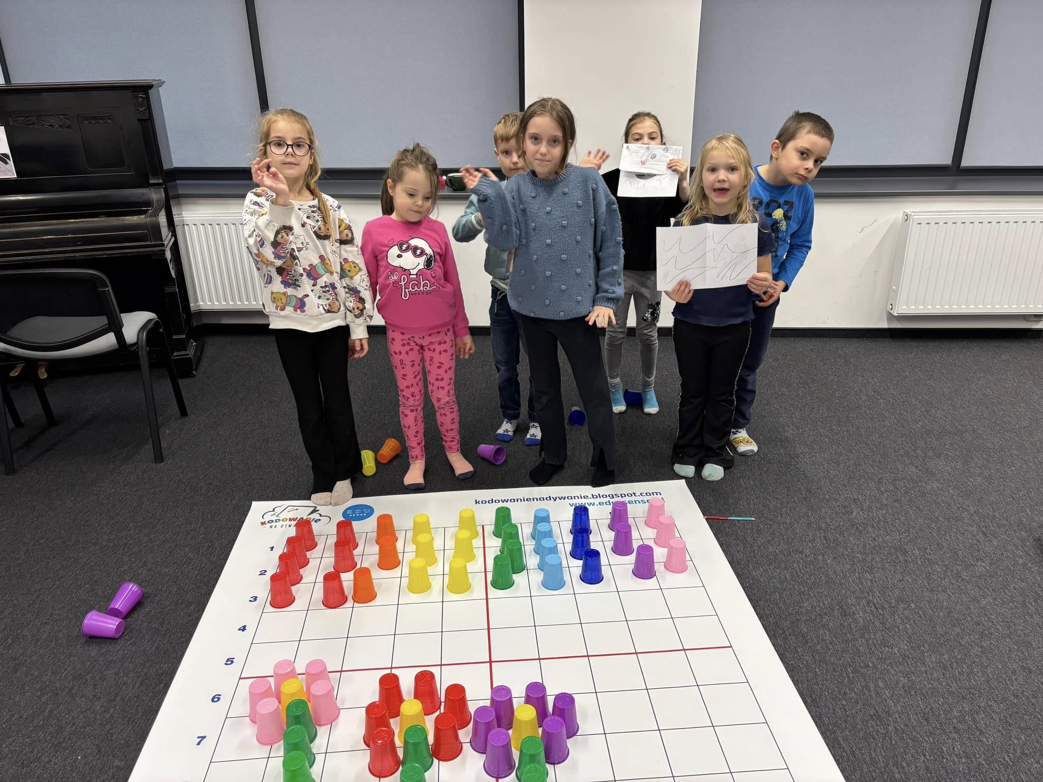 Marcowe kodowanie na dywanie i wiosenne inspiracje nauka kodowania poprzez zabawę uczy m.in. logicznego i twórczego myślenia, planowania, samodzielnego tworzenia różnych kodów.