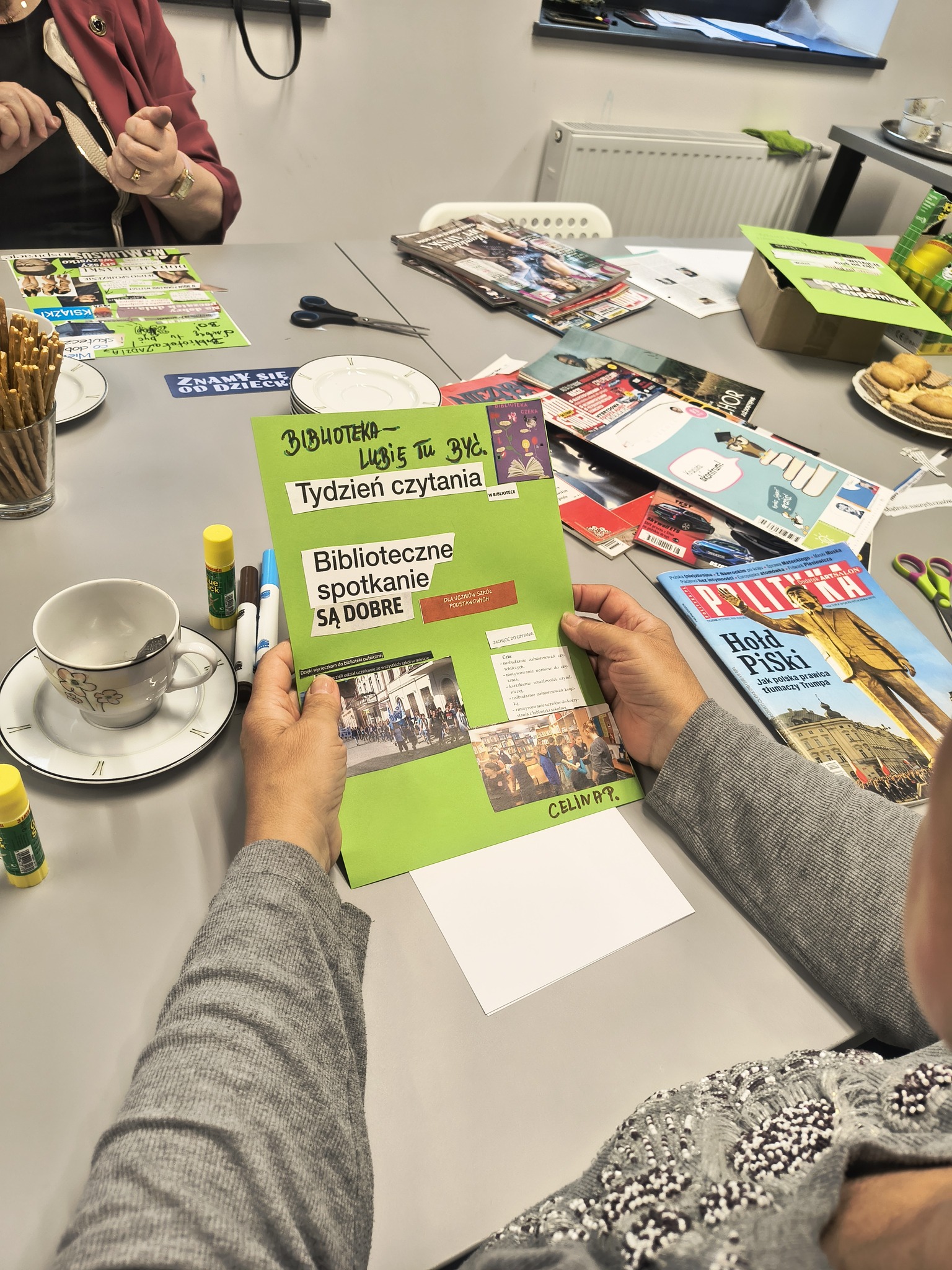 Powstały barwne, oryginalne prace, które nie tylko oddają osobiste emocje i refleksje uczestników, ale również podkreślają, jak wiele ważnych, potrzebnych i inspirujących wydarzeń odbywa się w przestrzeni biblioteki. Seniorzy z entuzjazmem dzielili się swoimi doświadczeniami, pokazując, że biblioteka to miejsce spotkań, rozwoju i prawdziwej wspólnoty.
