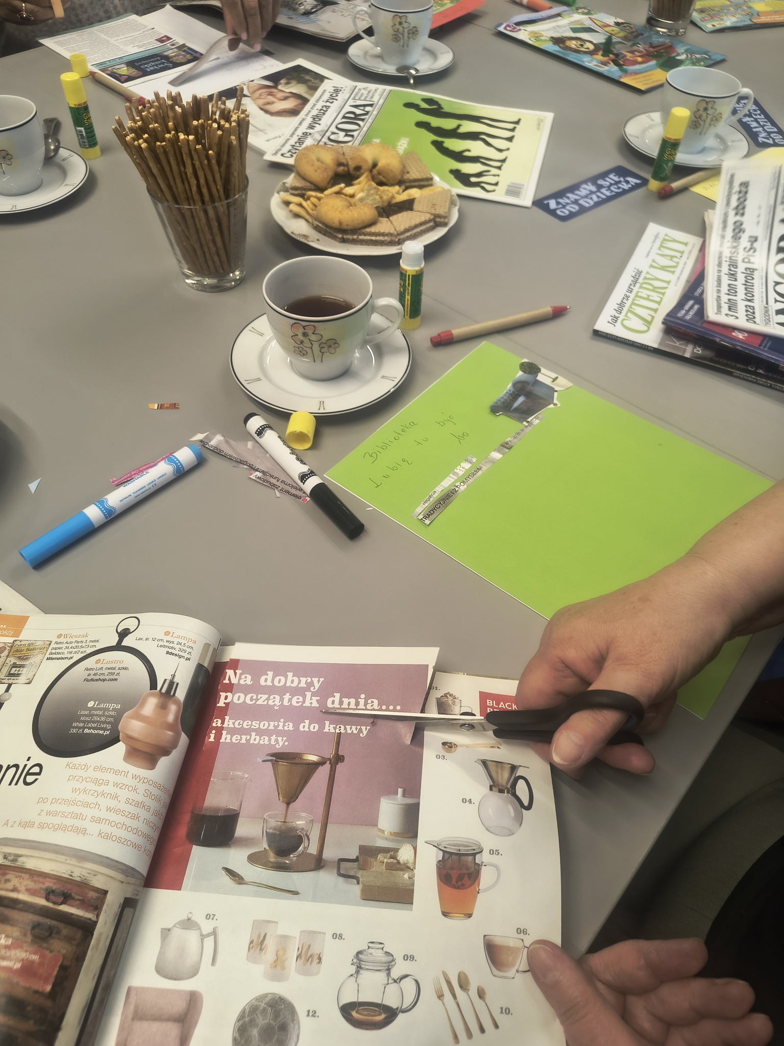 W ramach obchodów Tygodnia Bibliotek 2025, upływajacych pod hasłem „Biblioteka – lubię tu być”, w Biblioteka Publiczna MOKSiR w Chełmku odbyły się warsztaty kreatywno-literackie z seniorami. Uczestnicy spotkania stworzyli wyjątkowe słowne kolaże z fragmentów tekstów wyciętych z gazet, odpowiadając na pytanie: dlaczego lubią być w bibliotece?