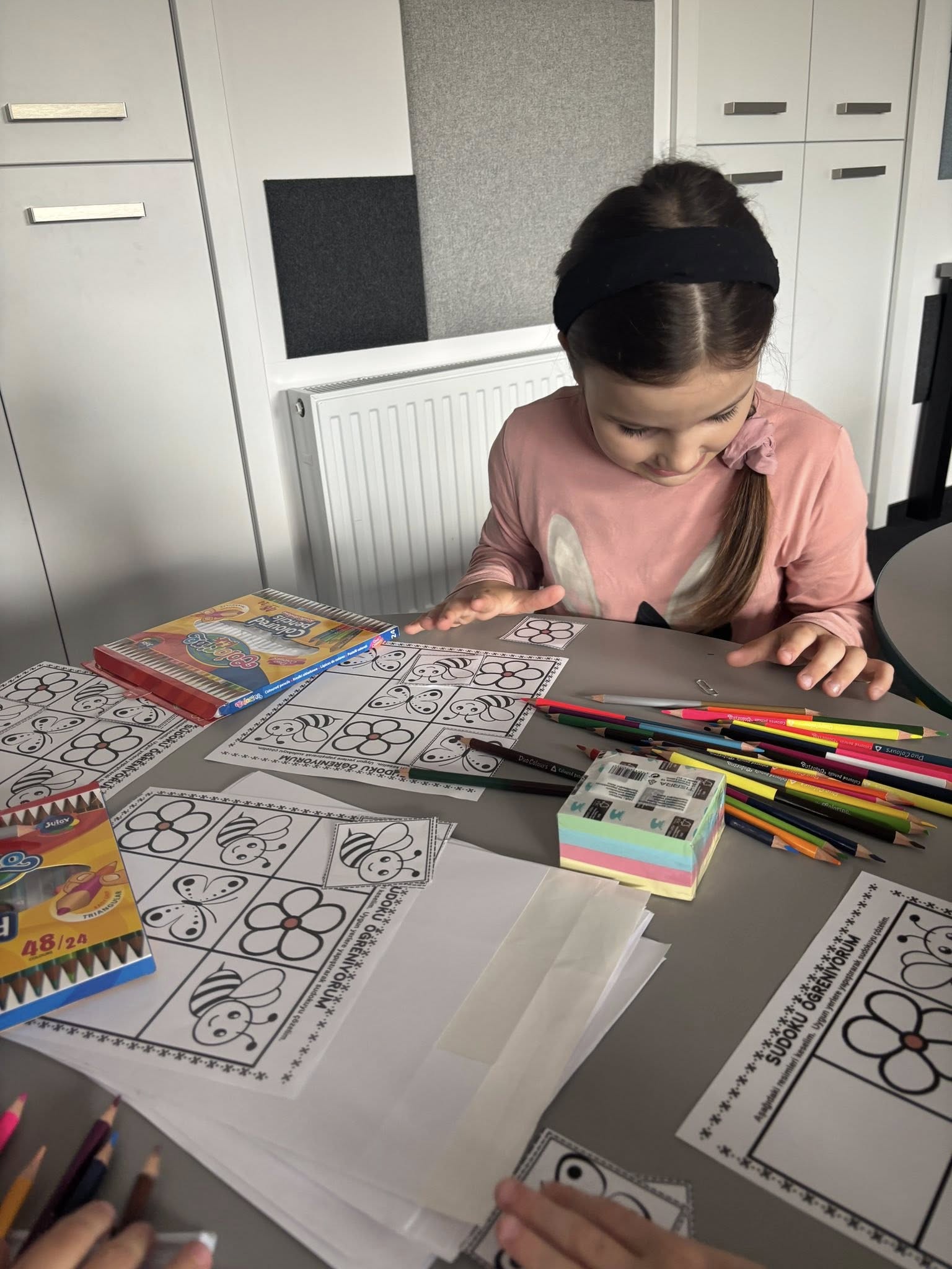 Kodowanie na dywanie i utrwalanie sekwencji w wiosennym sudoku i dyktandzie graficznym. Uczestnicy również próbują swoich sił w programowanie strzałkowym, które również wykorzystujemy przy zabawach ruchowych ![]()