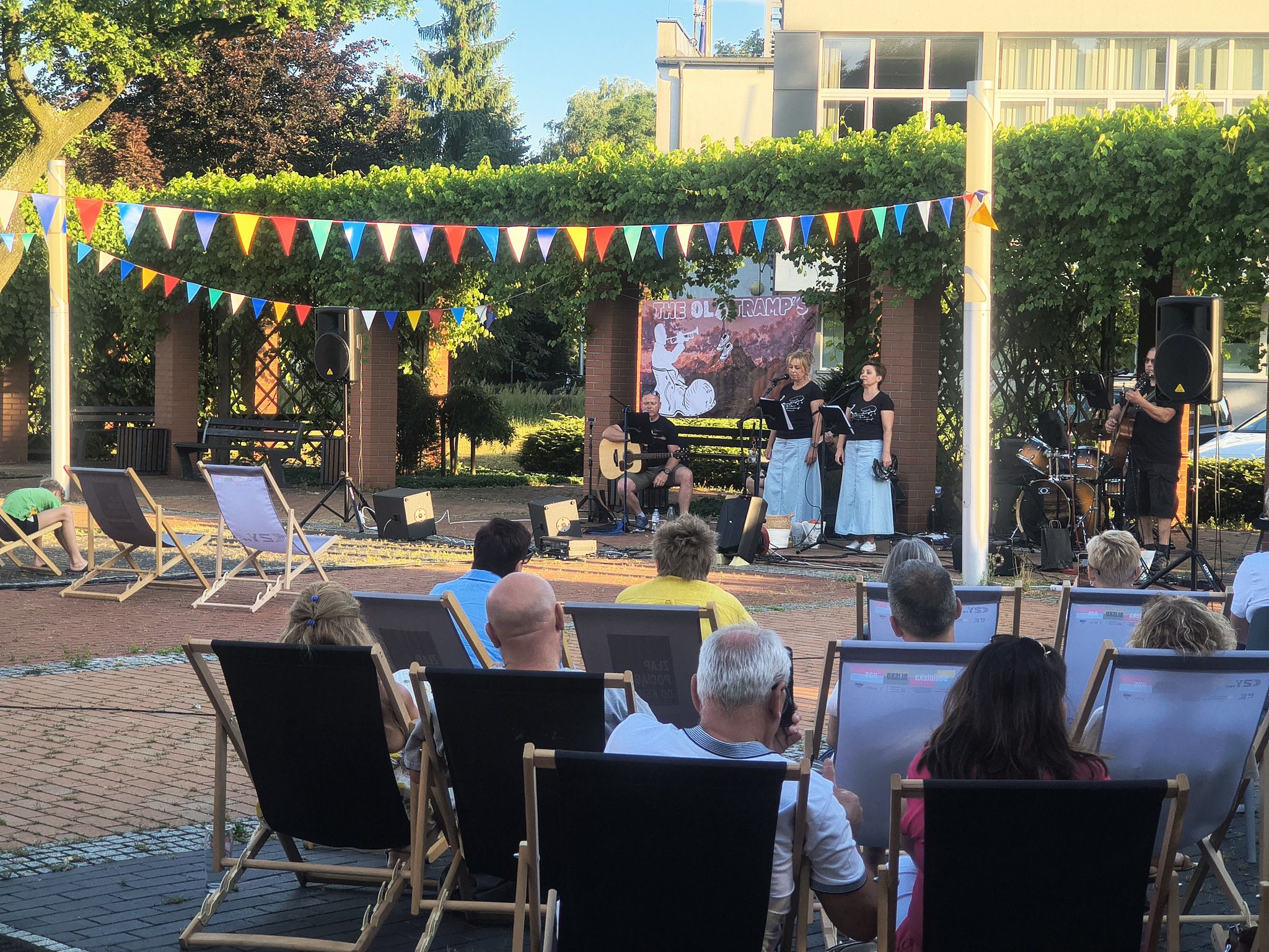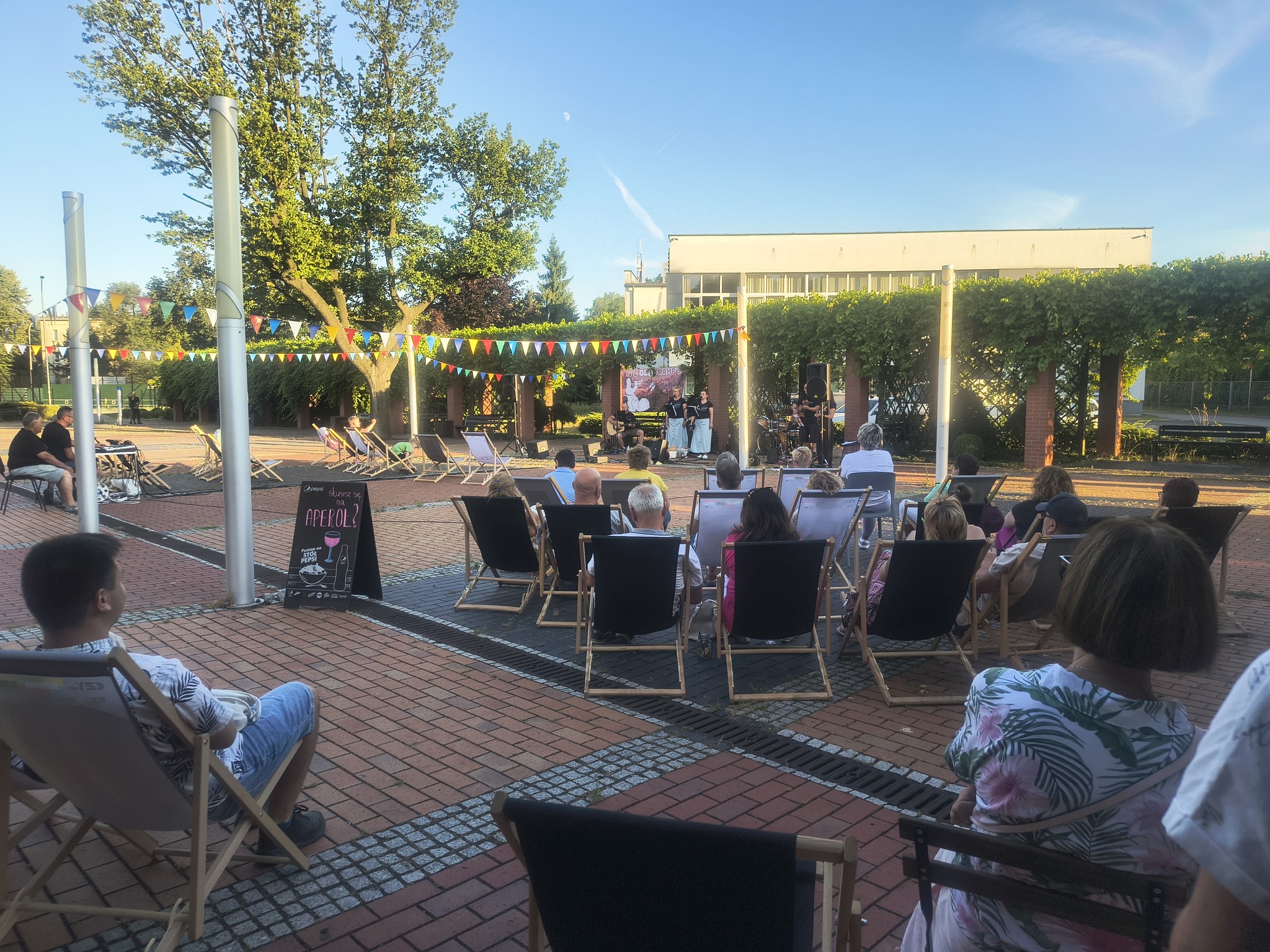 W ciepły, lipcowy wieczór, tuż przed Biblioteka Publiczna MOKSiR w Chełmku, gdy słońce leniwie przesuwało się po dachach, rozbrzmiała muzyka – żywa, szczera, pełna wspomnień...