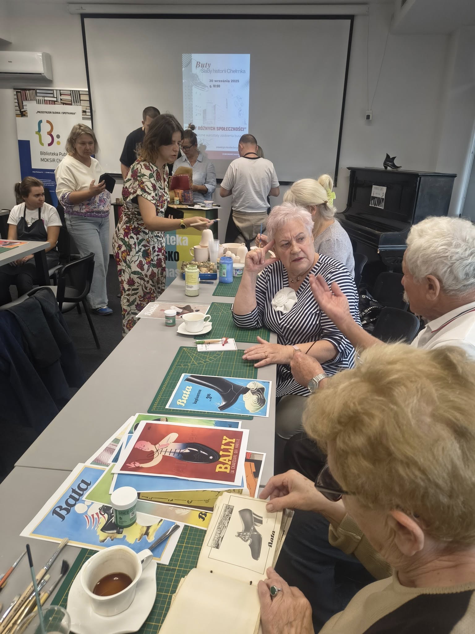 Spotkanie miało nie tylko artystyczny, ale i głęboko społeczny wymiar. Obok nas zasiedli goście specjalni przedstawiciele instytucji, stowarzyszeń oraz osoby, które przed laty związane były z chełmeckim przemysłem skórzanym. To dzięki nim odbyła się prawdziwa lekcja historii, przepełniona wzruszającymi wspomnieniami. Pan Józef przywołał barwne opowieści o mistrzach obuwia naprawkowego i miarowego, a pani Jadzia dzieliła się wiedzą o rodzajach skór i pamiętała nawet symbole podszewek – jak choćby SP41 oznaczający kolor beżowy.![]()