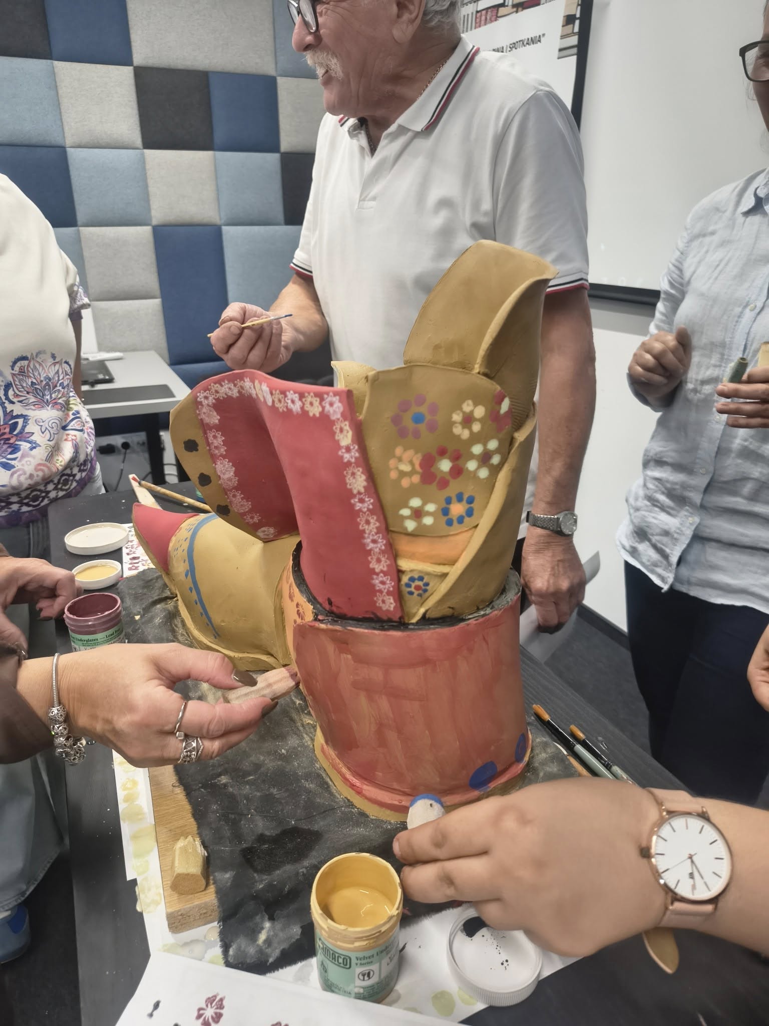 Spotkanie, kończące cykl warsztatów „Buty – ślady historii Chełmka”, było świętem wspomnień, twórczej pracy i lokalnej tożsamości. Uczestnicy Fundacja im. Brata Alberta Warsztat Terapii Zajęciowej w Chełmku oraz Środowiskowy Dom Samopomocy Chełmek wraz z kierownikami i opiekunami zdobili ceramiczny but, symbol naszego miasta. ![]()