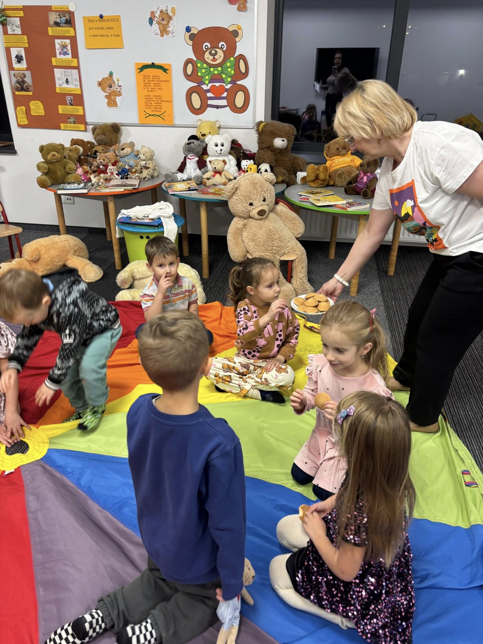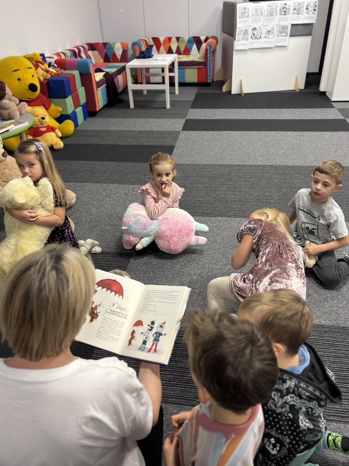 Nie zabrakło wspólnego czytania, tym razem fragmentu z „Misia Uszatka”, który jak zawsze wprowadził ciepły, przytulny nastrój. A na koniec… pyszny, słodki poczęstunek, bo święto misiów trzeba odpowiednio uczcić! ![]()