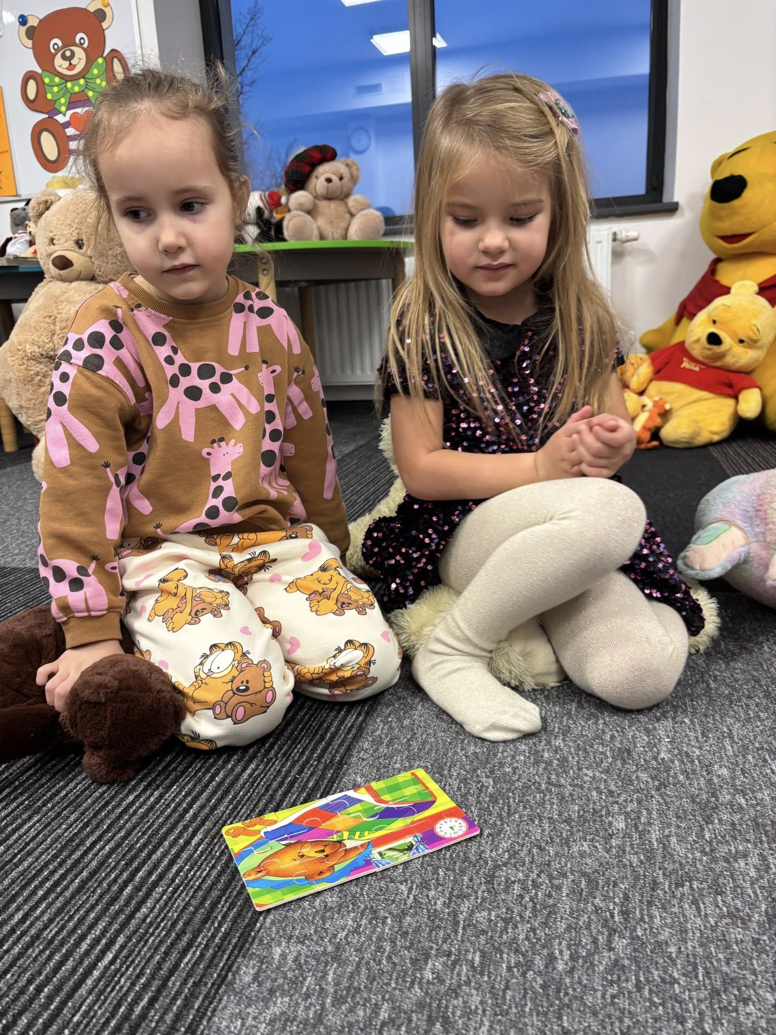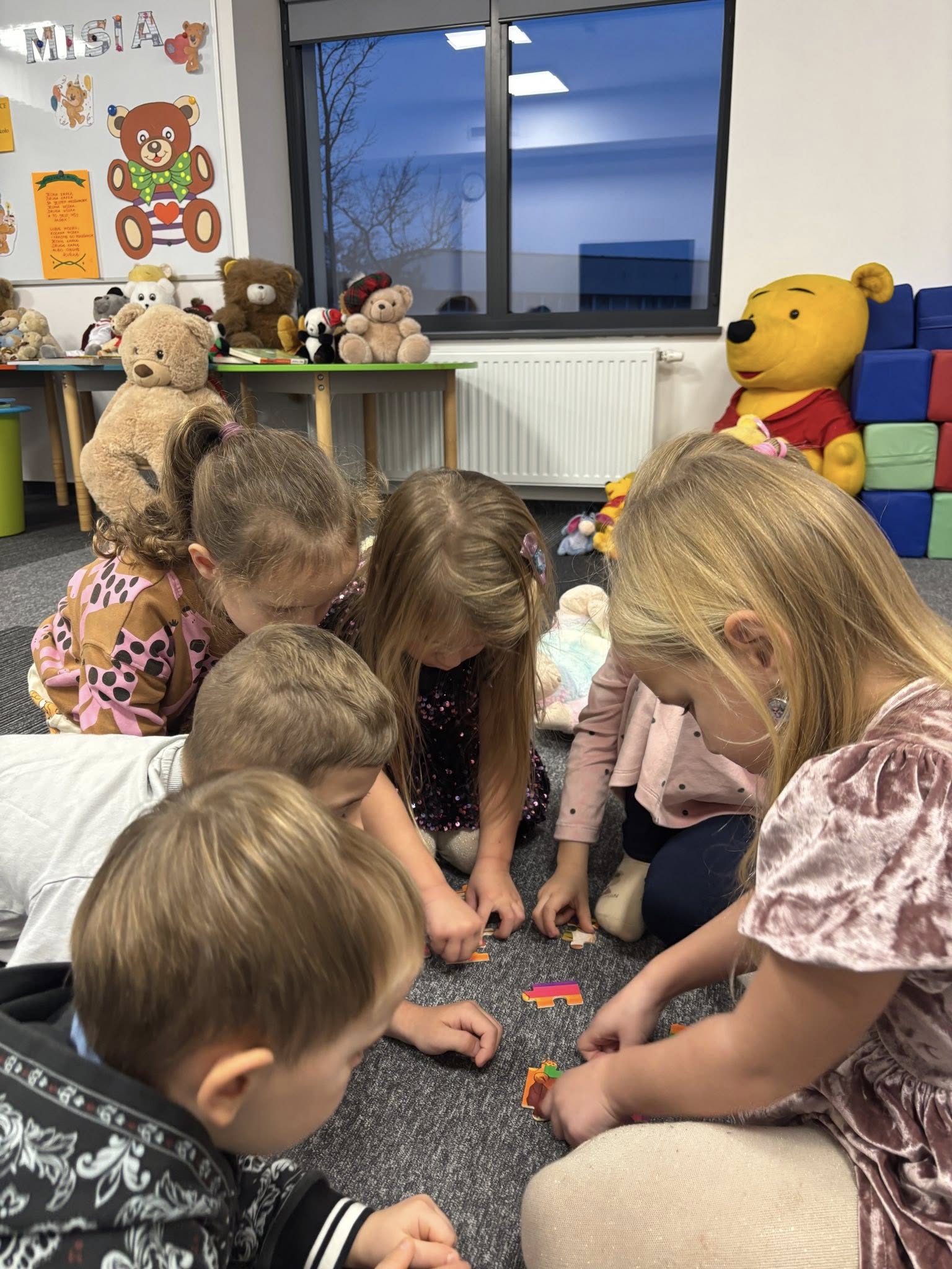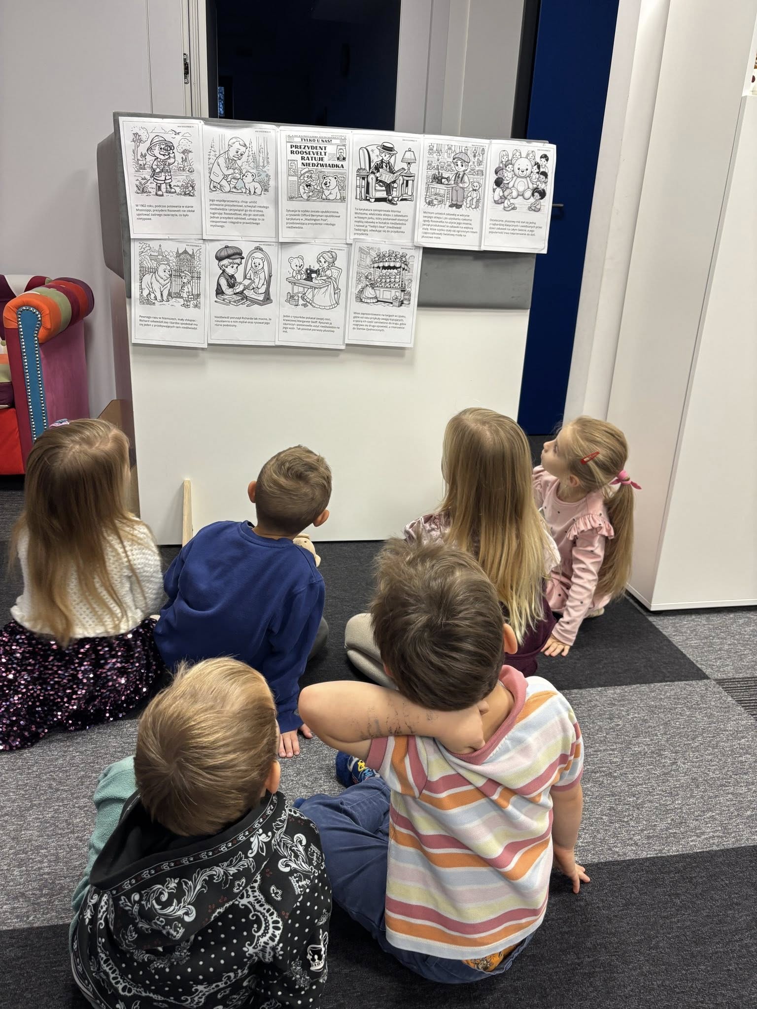 Dzieci wysłuchały pięknej historii o misiach, bawiły się w „niedźwiedzia”, rozwiązywały zagadki i tańczyły przy wesołych piosenkach. Rozmawialiśmy także o najsłynniejszych misiach świata, od klasyków z bajek po bohaterów książek.