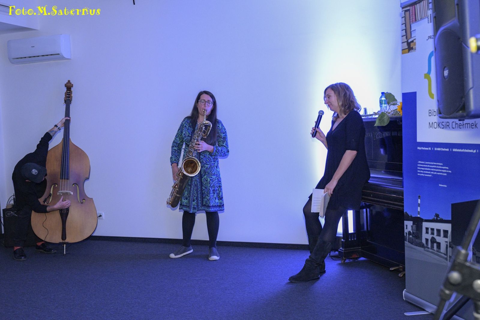 Biblioteka Miejskiego Ośrodka Kultury Sportu i Rekreacji w Chełmku zaprasza na program poetycko- muzyczny „ALLEL” w wykonaniu Barbary Klickiej – teksty, Pauliny Owczarek – saksofon, Ernesta Ogórka – kontrabas. Artyści wystąpią na scenie nowej biblioteki przy Alei Parkowej 16 w poniedziałek 20 września 2021 roku o godz. 18.00. Wstęp wolny.