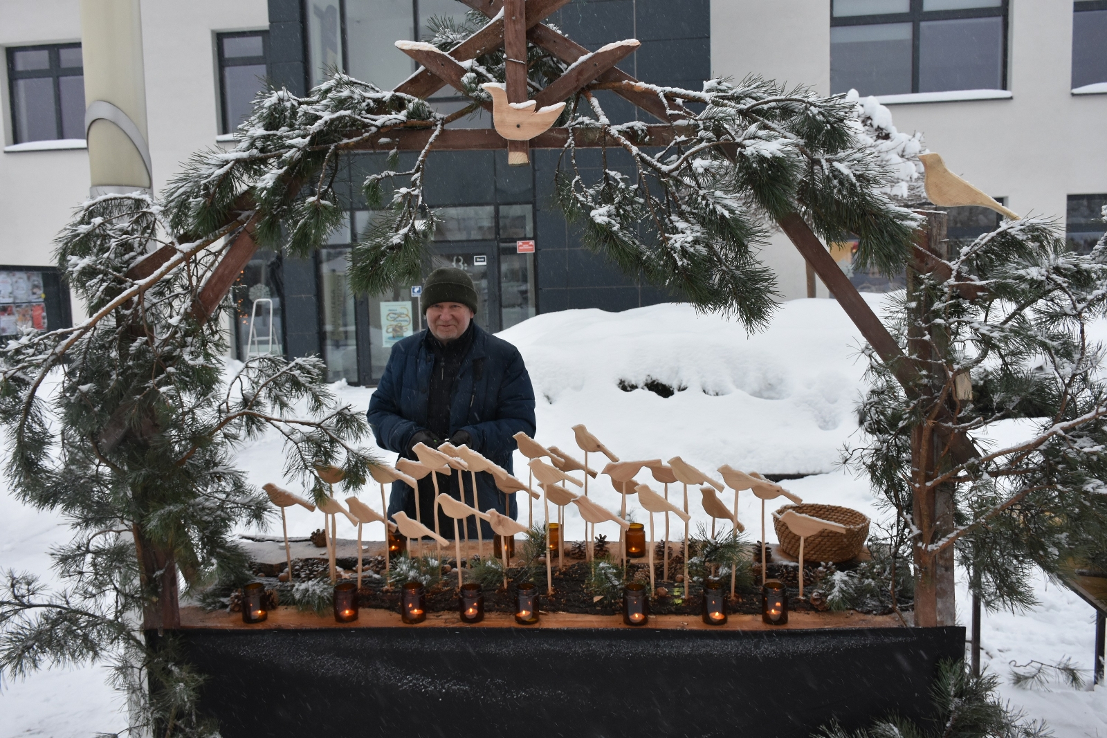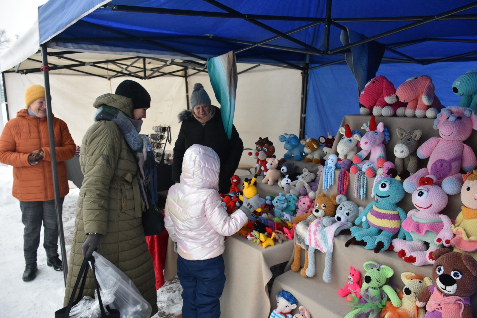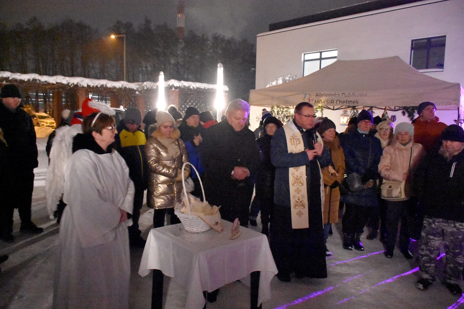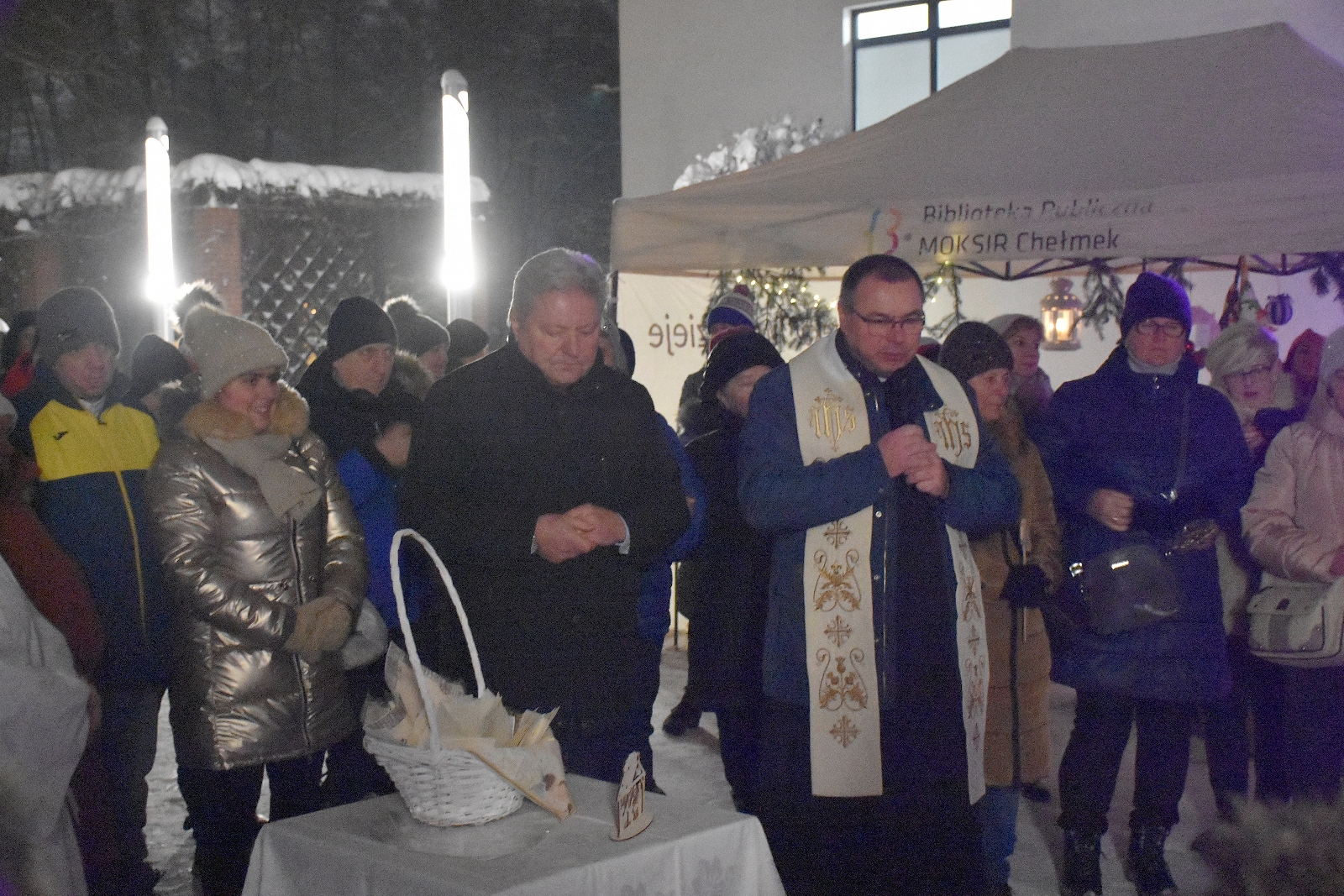 16 grudnia 2022 roku na placu przed siedzibą Biblioteki Publicznej MOKSIR w Chełmku odbył się II Jarmark Świąteczny. W aurze prawdziwie zimowej można było na stoiskach nabyć m.in. świąteczne ozdoby, prace rękodzielnicze, obrazy, biżuterię, pierniki i ciasta oraz rzeźbione z drewna ptaki. O godzinie 17.00 nastąpiło uroczyste spotkanie wigilijne z mieszkańcami . Pan Andrzej Saternus Burmistrz Chełmka złożył wszystkim zgromadzonym życzenia na nadchodzące Święta Bożego Narodzenia , było tradycyjne łamanie się opłatkiem życząc sobie nawzajem zdrowia i pokoju. Spotkanie uświetniły piękne muzyczne występy podopiecznych z Środowiskowego Domu Samopomocy w Chełmku oraz z Warsztatu Terapii Zajęciowej w Chełmku Fundacji im. Brata Alberta. W blasku naturalnego światła można było ogrzać się przy ognisku, napić gorącej herbaty i skosztować barszcz z krokietem. Wydarzenie to miało także akcent charytatywny. 1150,80 zł., taka kwota została zebrana dzięki hojności chełmkowian. To cegiełka przeznaczona na leczenie Adasia podopiecznego Stowarzyszenia Pozytywni. Dziękujemy wszystkim, którzy w różny sposób zaangażowali się w to wydarzenie. Grupa Aktywni +, Grupa „Spotkania z rękodziełem” przy Domu Ludowym w Chełmku, RSTK, ŚDS w Chełmku, MOPS w Chełmku, Cafe Kultura, Warsztat Terapii Zajęciowej w Chełmku Fundacji im. Brata Alberta oraz wszystkim wystawcom i przybyłym mieszkańcom.