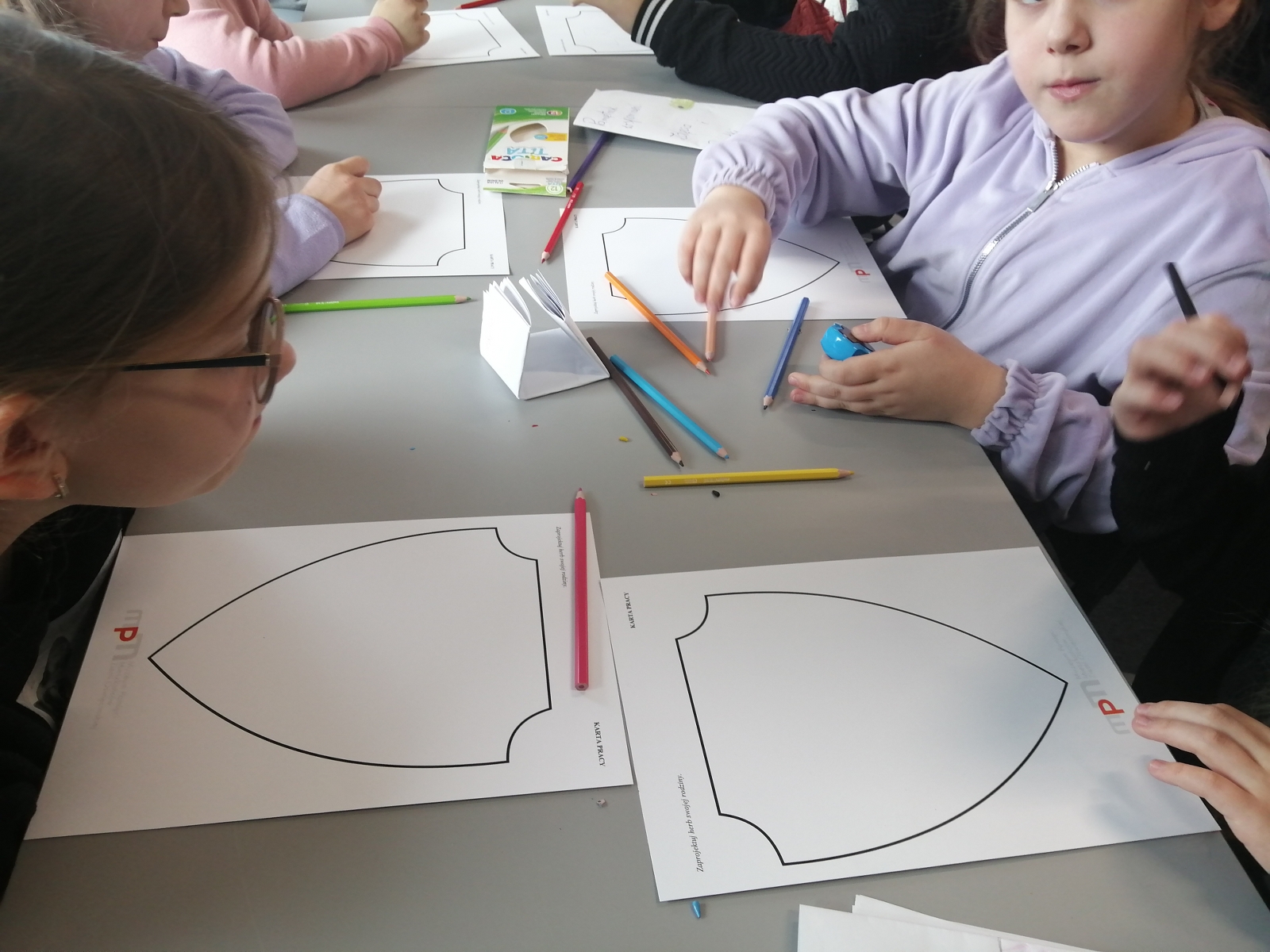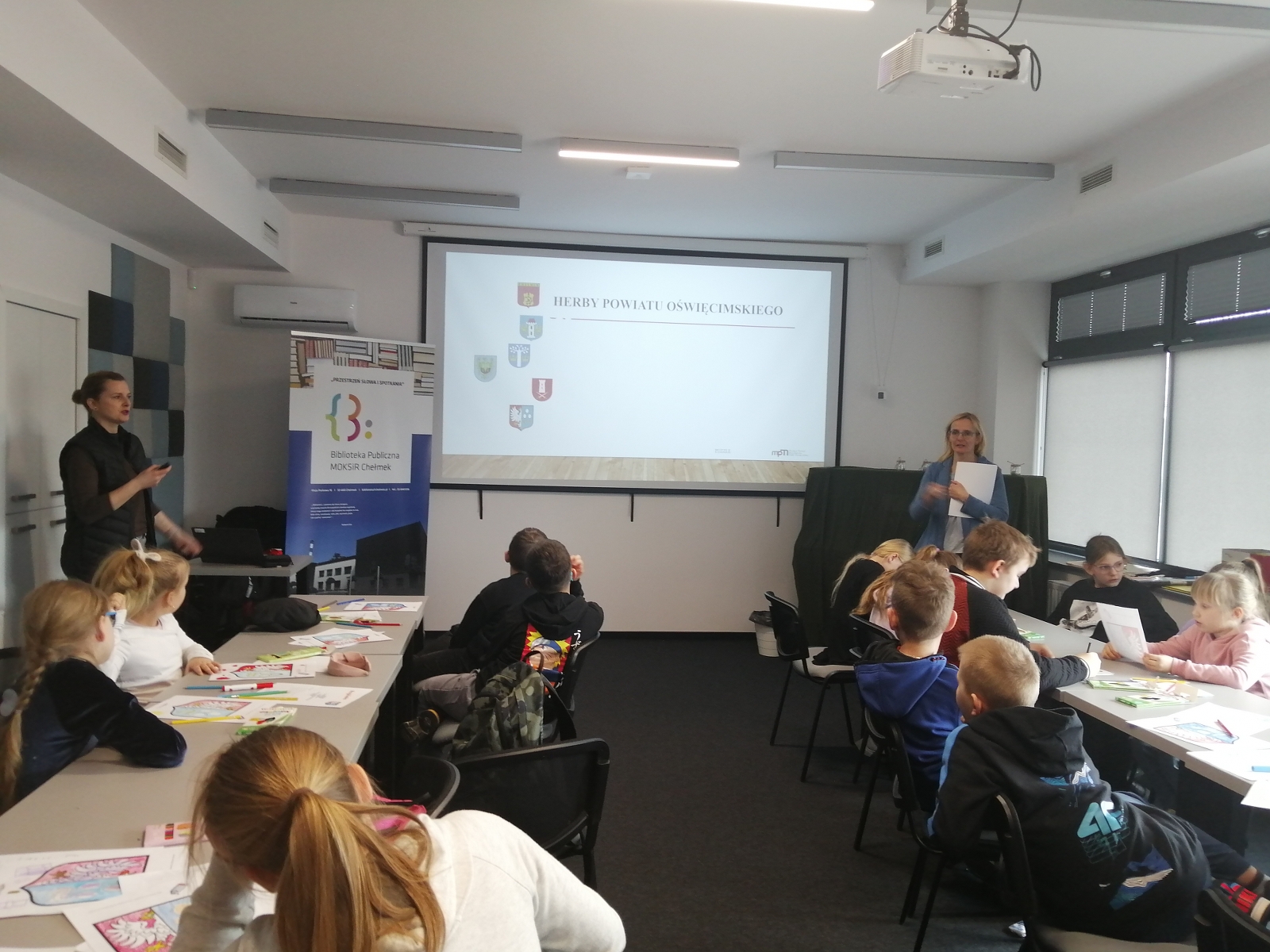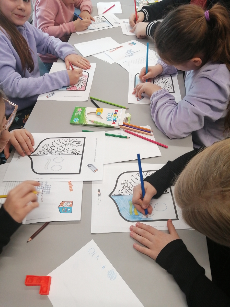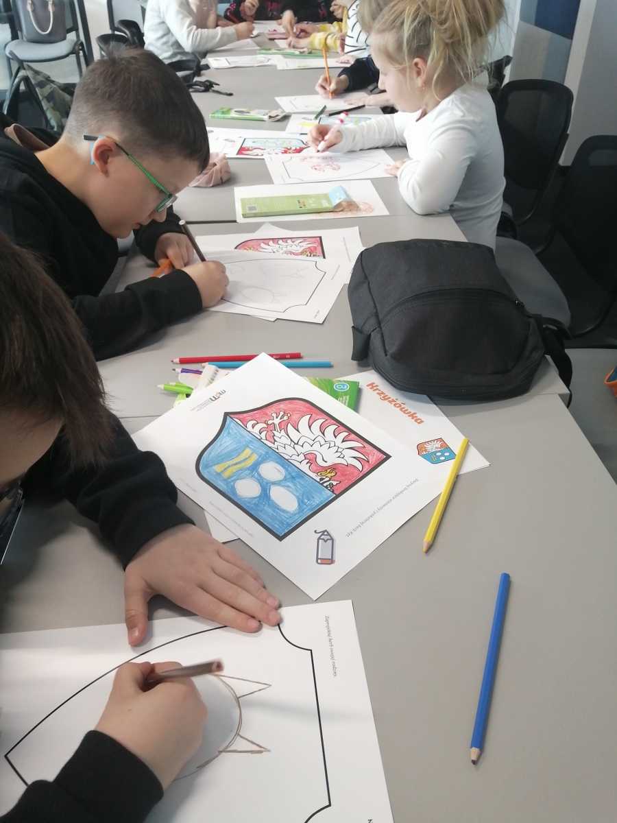 Dzieci mogły zapoznać się m.in. z pojęciami legenda czy herb. Dowiedziały się jak on powstaje, poznały także herby gmin powiatu oświęcimskiego, był też czas na tworzenie swoich autorskich projektów.