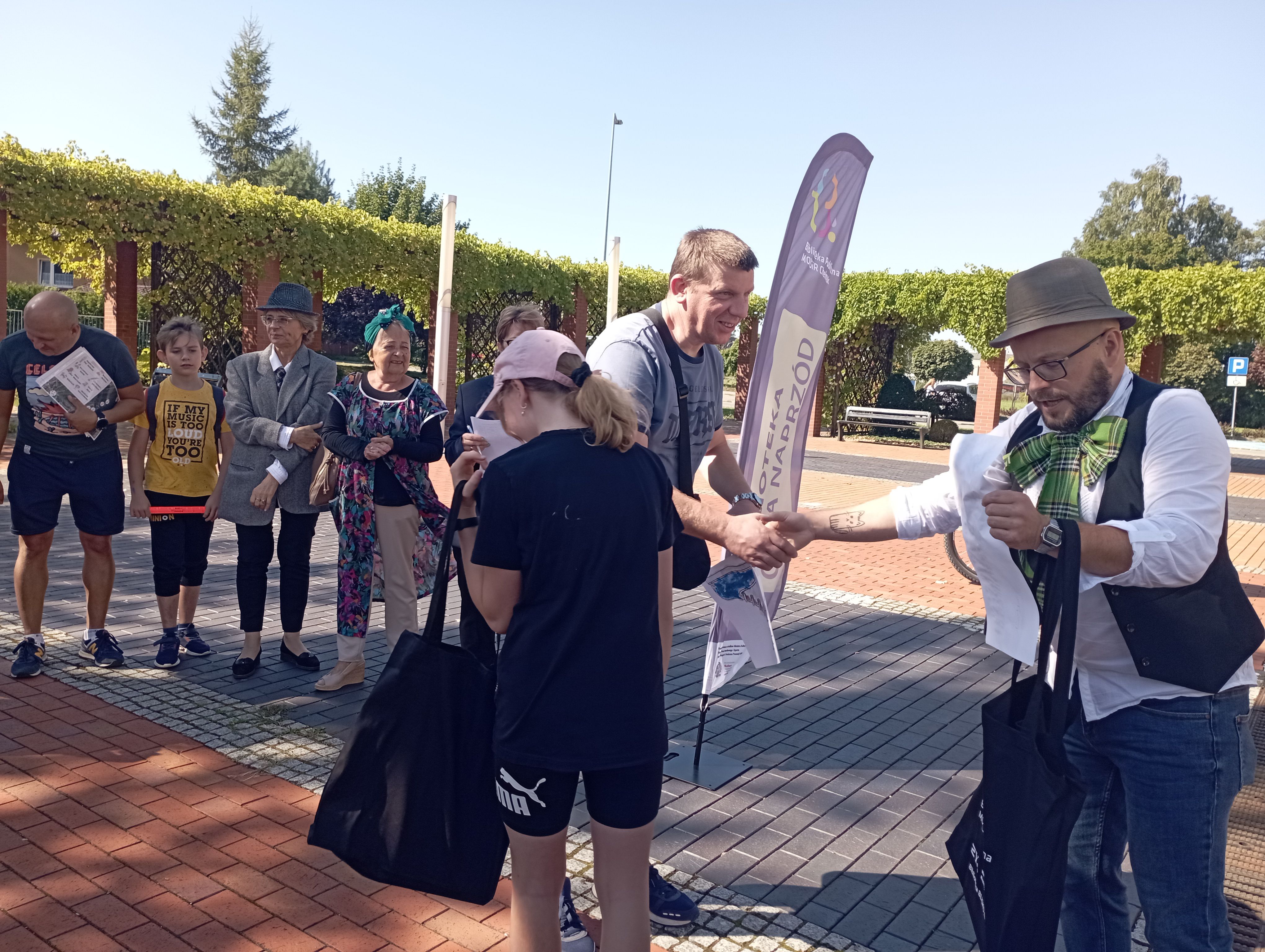 Drużyny miały sporo zadań do rozwiązania i spotkań z postaciami... krótki quiz z historii Chełmka.....wejść do zaciemnionego pomieszczania i dzięki latarce UV odnaleźć spis przedmiotów, a później je poszukać w byłej siedzibie Biblioteki i przynieść dyżurującej tam bibliotekarce.....czy otrzymanie rozsypanych sylab z inwokacji (nie całej) Zadaniem drużyn polegało na ułożeniu wiersza, który pozwoli na powrót Pana Tadeusza do lektury.... Był też Sherlock Holmes, który potrzebował rozwiązania zagadki swego pobytu.....Robotnik z fabryki Baty, opowiadający o swojej codziennej pracy i trudnościach. Drużyny musieli ustrzelić narzędzia i elementy związane z produkcją butów. Pojawiła się też postać Tadeusza Staicha i napis z kamienia do odtworzenia...Fryderyk Chopin, grający na niewidzialnym fortepianie i zebranie nut w specjalnych okularach - alkogoglach. Uczestnicy wzięli również udział w konkursie na projekt buta przyszłości.Nagrodziliśmy 4 drużyny rodzinne. Autorzy namalowanych butów na Dworcu Chełmek Fabryka otrzymali nagrody.
