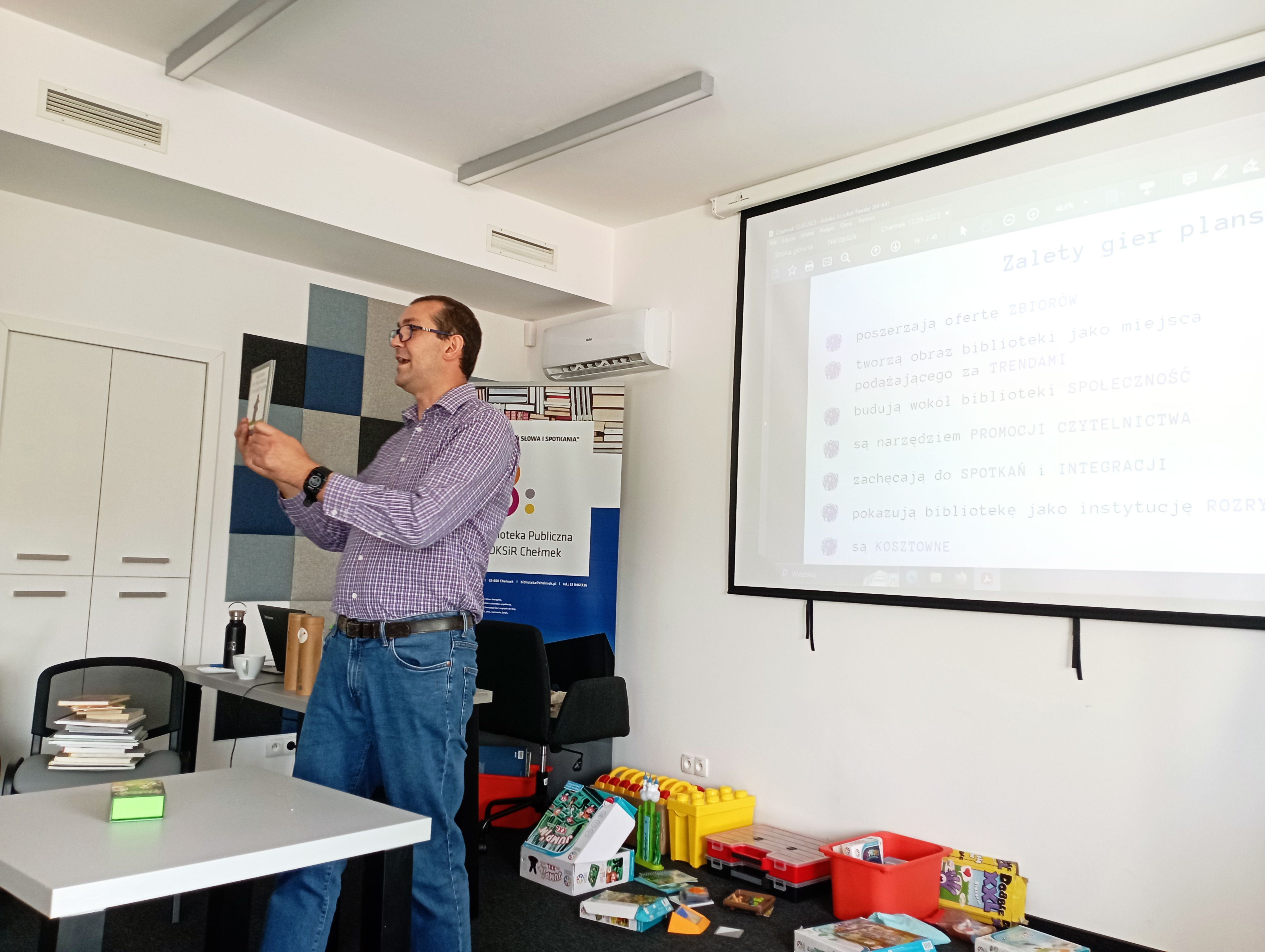 12 września 2023 r. odbyło się kolejne szkolenie w ramach zadania "Biblioteka BLISKO nas”, które dla grona bibliotekarzy poprowadził Paweł Dobrzelecki – m.in. trener, animator, Ogólnopolski Bibliotekarz roku 2018, inicjator wielu projektów skierowanych dla dzieci, stypendysta MKiDN w dziedzinie upowszechniania kultury.