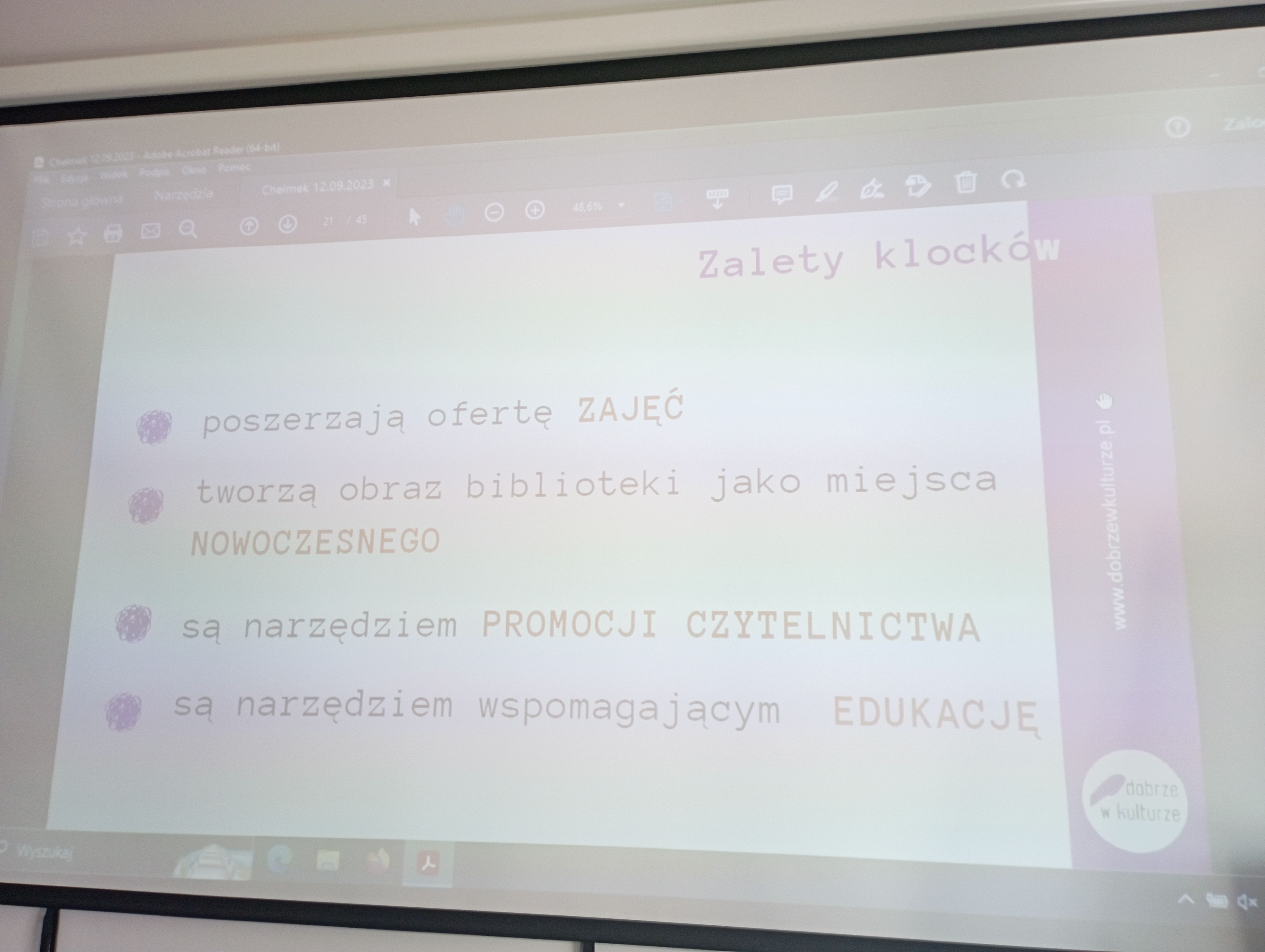 Spotkanie było inspiracją do atrakcyjnego tworzenia oferty dla najmłodszych i ich opiekunów, by wizyta w bibliotece, była czymś wyjątkowym i wyczekiwanym. By biblioteka stała się dla nich „Trzecim miejscem”.