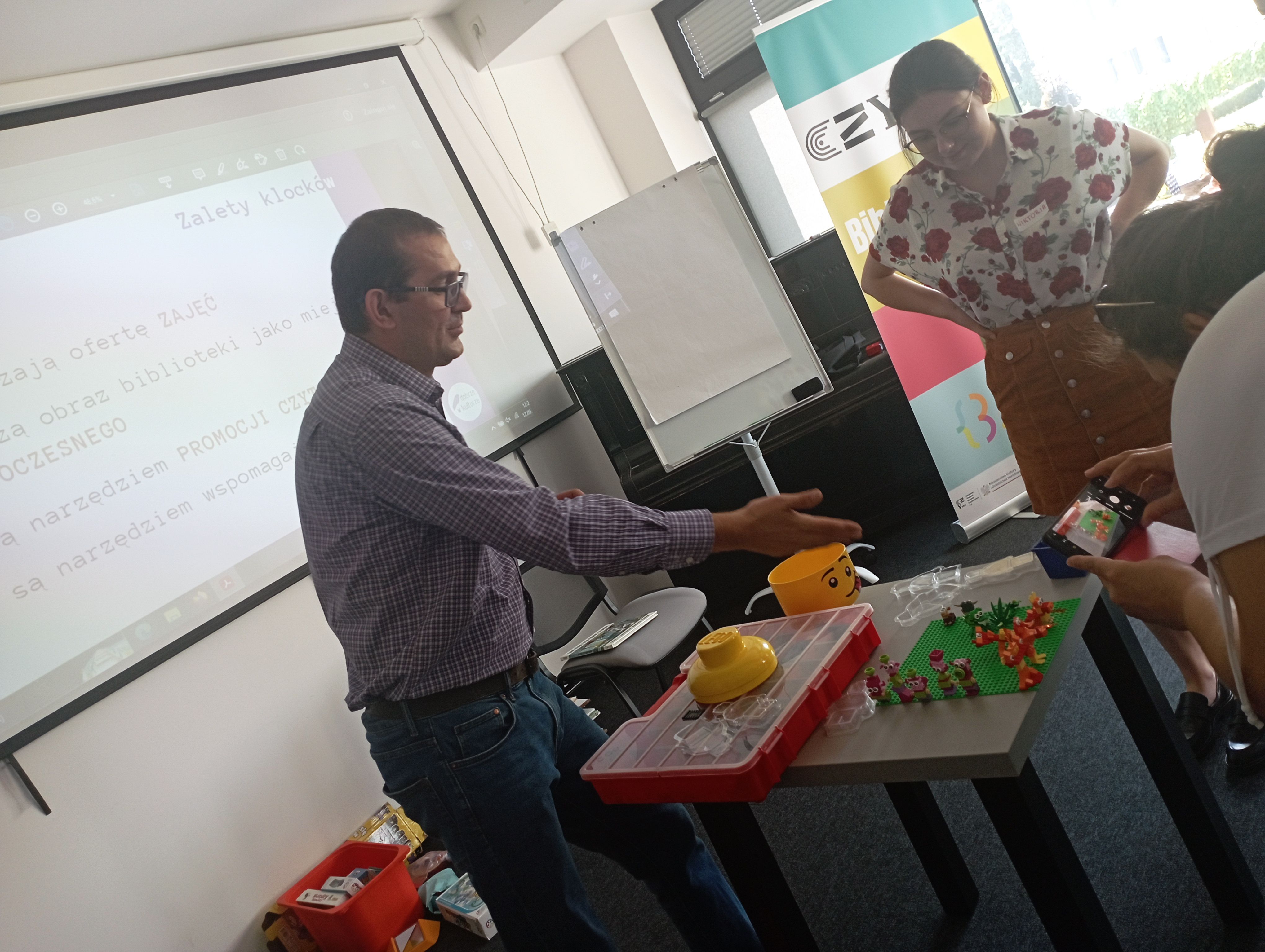 Podczas warsztatów w niezwykły sposób zainspirował uczestników, pokazując różne rozwiązania, gdzie książka staje się pretekstem do twórczych działań. Teksty literackie, gry, klocki wspaniałe narzędzia do pracy z małym czytelnikiem. Zapewne teraz każdy z nas pracuje nad wdrożeniem na początek choć ułamka tych rozwiązań tak, by jeszcze bardziej zwiększyć atrakcyjność naszych placówek, szczególnie wśród dzieci i rodziców, by stali się oni częstymi użytkownikami biblioteki.