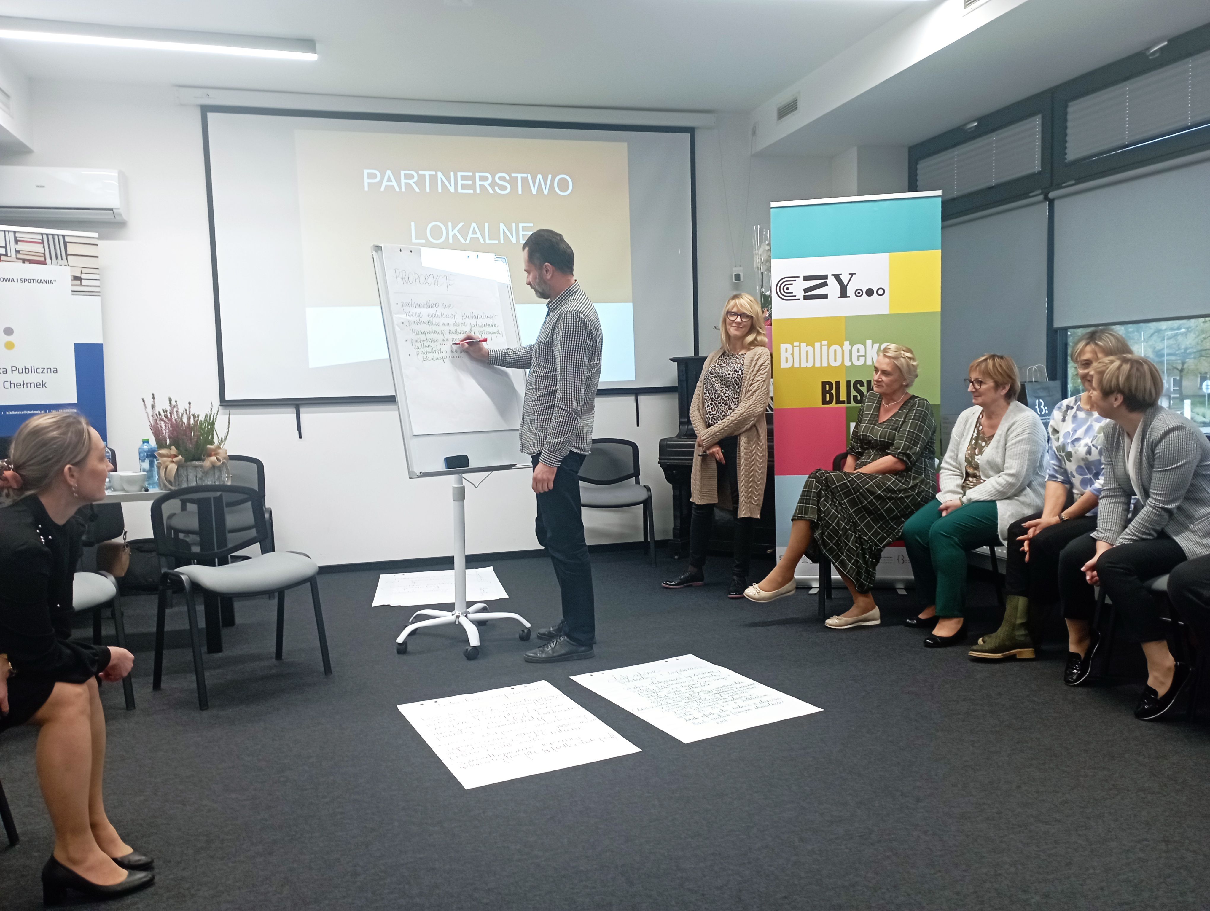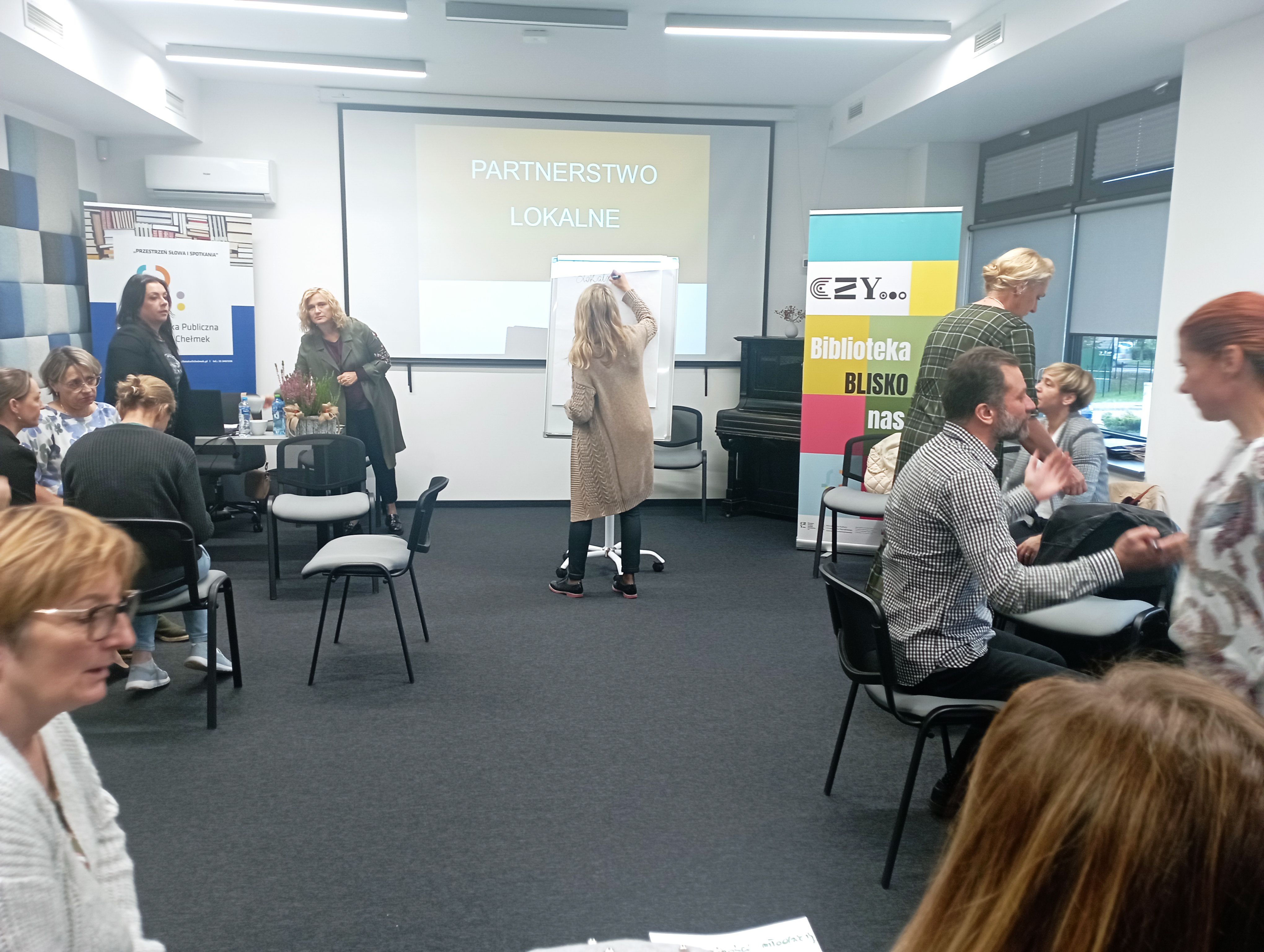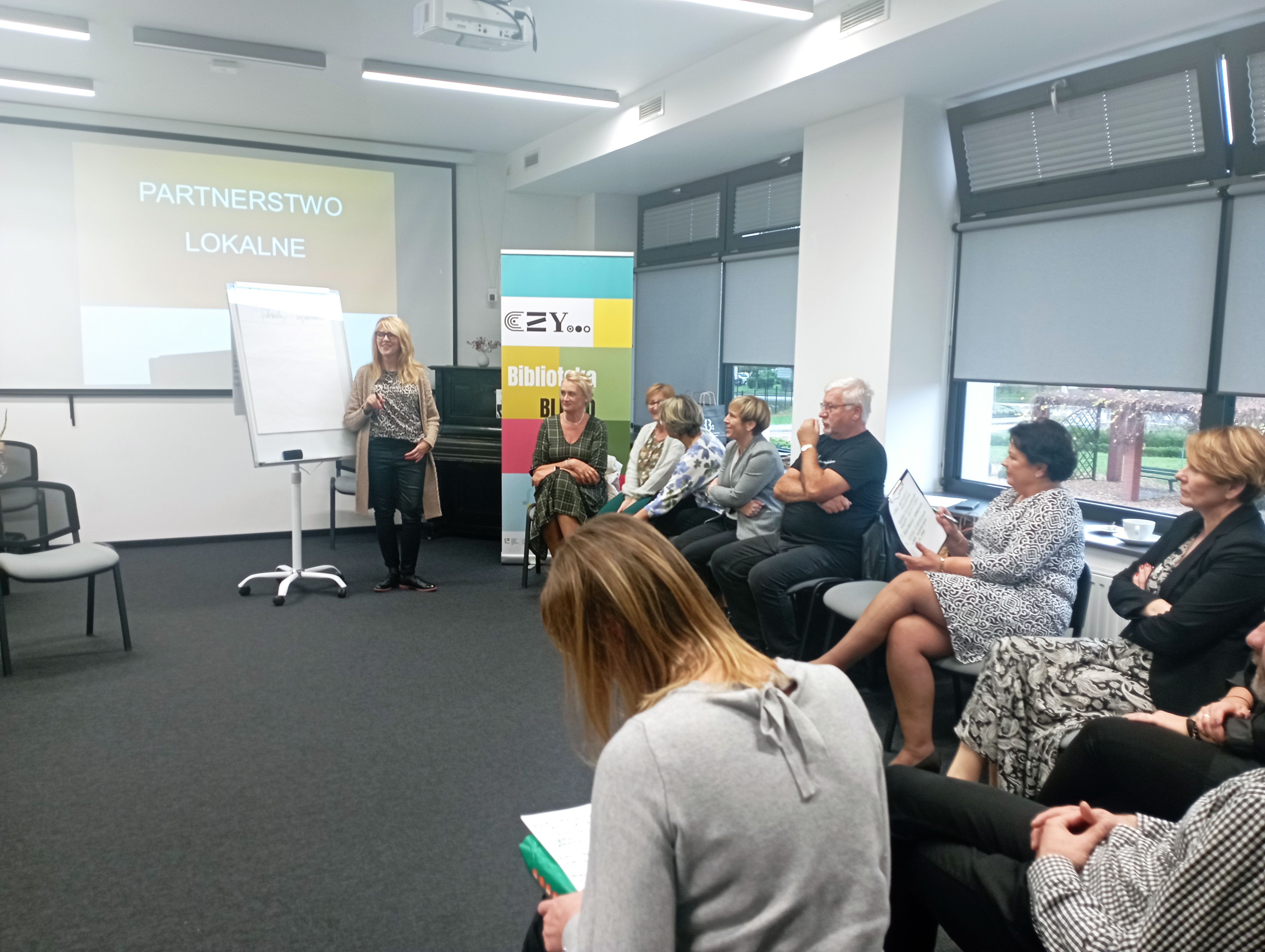 W szkoleniu wzięli udział oprócz pracowników chełmkowskiej biblioteki nasi Partnerzy zadania, w tym Przewodnicząca Komisji Edukacji, Kultury, Sportu i Rekreacji w Chełmku, dyrektorzy i pracownicy placówek oświatowych, MOPS-u, ŚDS, RSTK, a także dyrektorzy zaprzyjaźnionych bibliotek w Bojszowach, Lędzinach, Libiążu i Bieruniu.