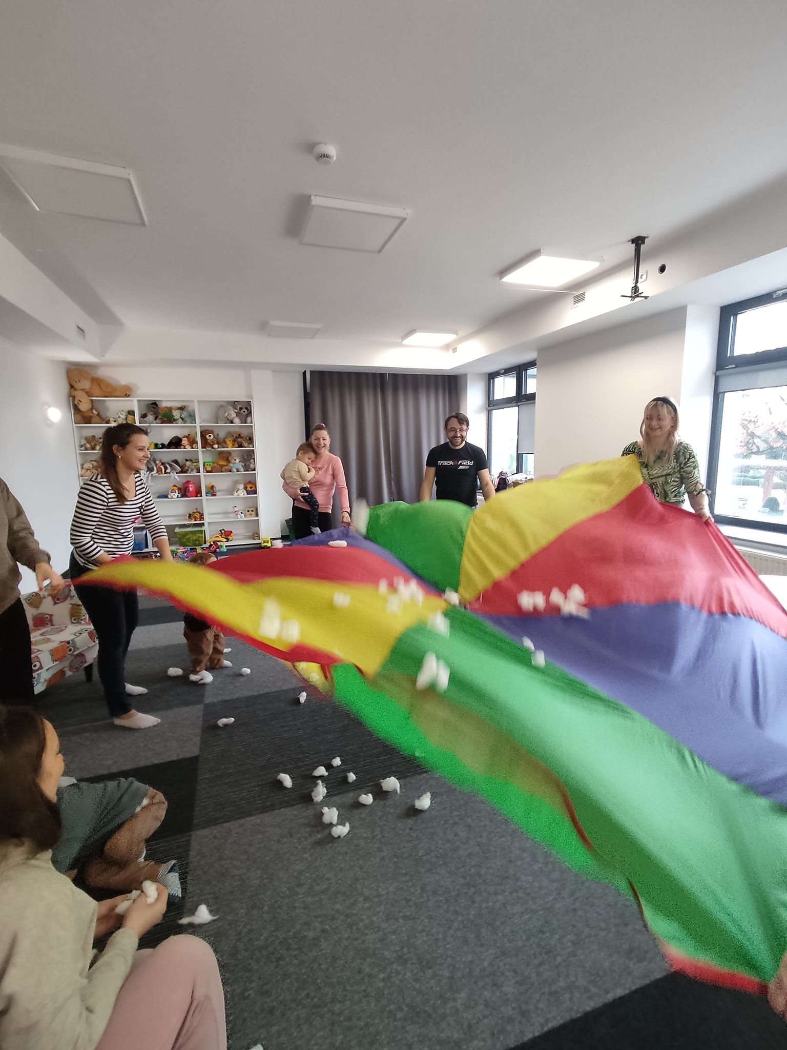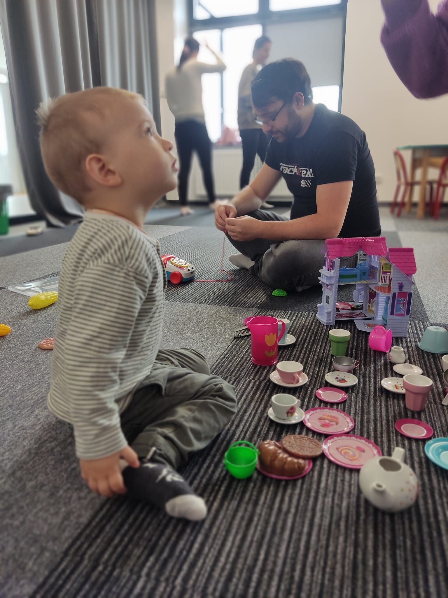 Muzyczne animacje ruchowe, czas na wspólną zabawę dzieci i kawa dla rodzica