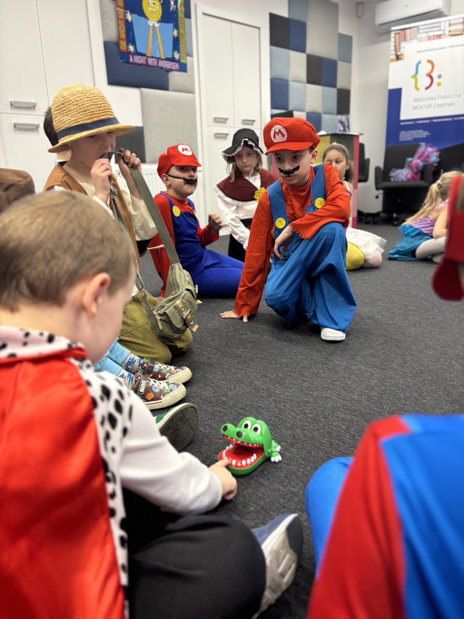 Biblioteka Publiczna MOKSiR w Chełmkuprzygotowała dla dzieci mnóstwo niezwykłych atrakcji. Wieczór rozpoczął się od słodkiej niespodzianki – urodzinowego tortu, pięknie podarowanego przez PPiekarnia Cukiernia AWAz Oświęcimia, której wsparcie dla bibliotecznych inicjatyw jest bezcenne. Dziekujemy pięknie