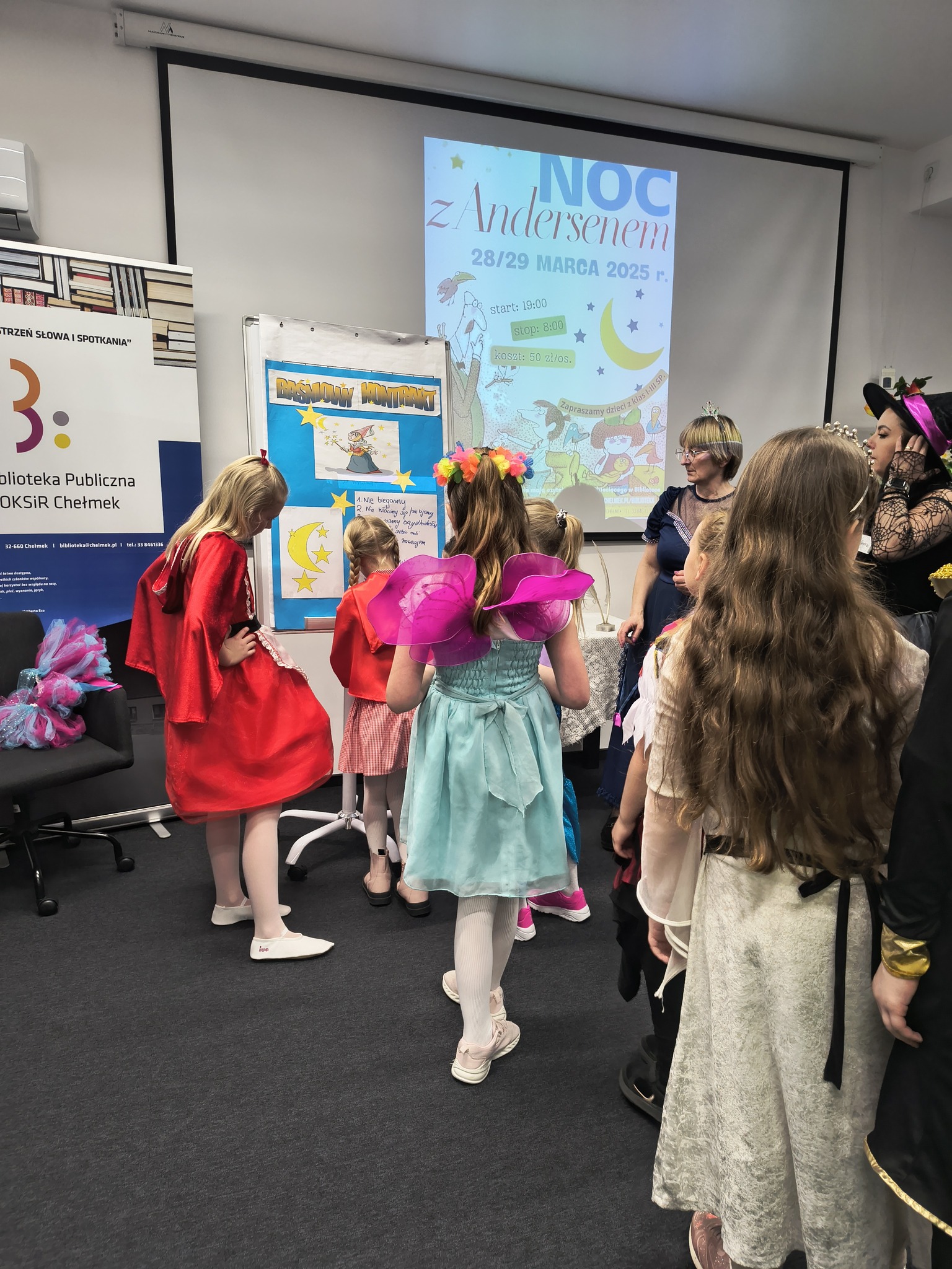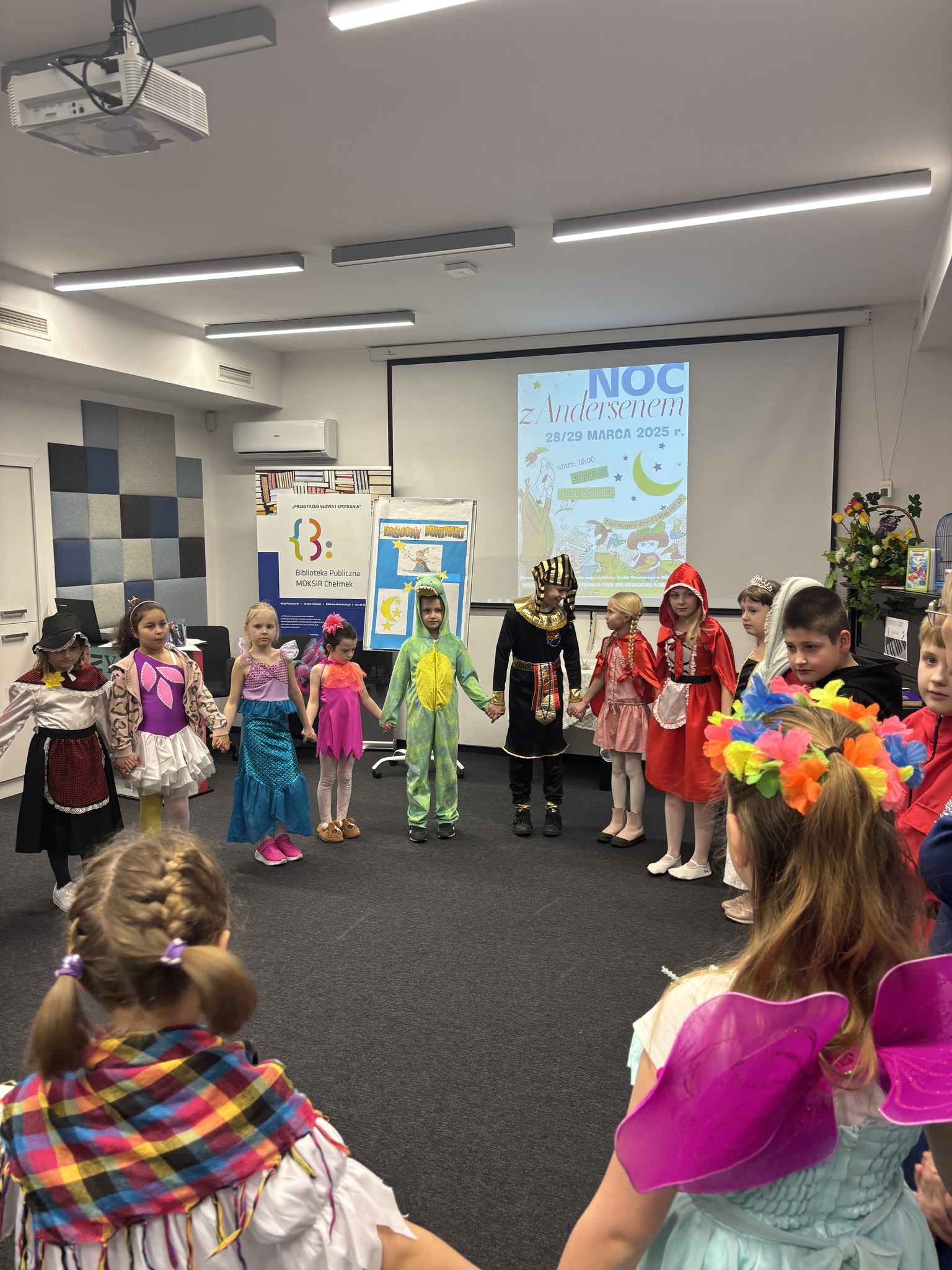 W nocy z 28 na 29 marca 2025 roku w murach Biblioteki Publicznej MOKSiR w Chełmku odbyło się wyjątkowe wydarzenie, które na długo pozostanie w pamięci jego uczestników... To niezwykłe spotkanie, pełne magii i literackich przygód, zgromadziło 22 dzieci w wieku 7-11 lat, które pod czujnym okiem bibliotekarzy wyruszyły w baśniową podróż inspirowaną twórczością Hansa Christiana Andersena.