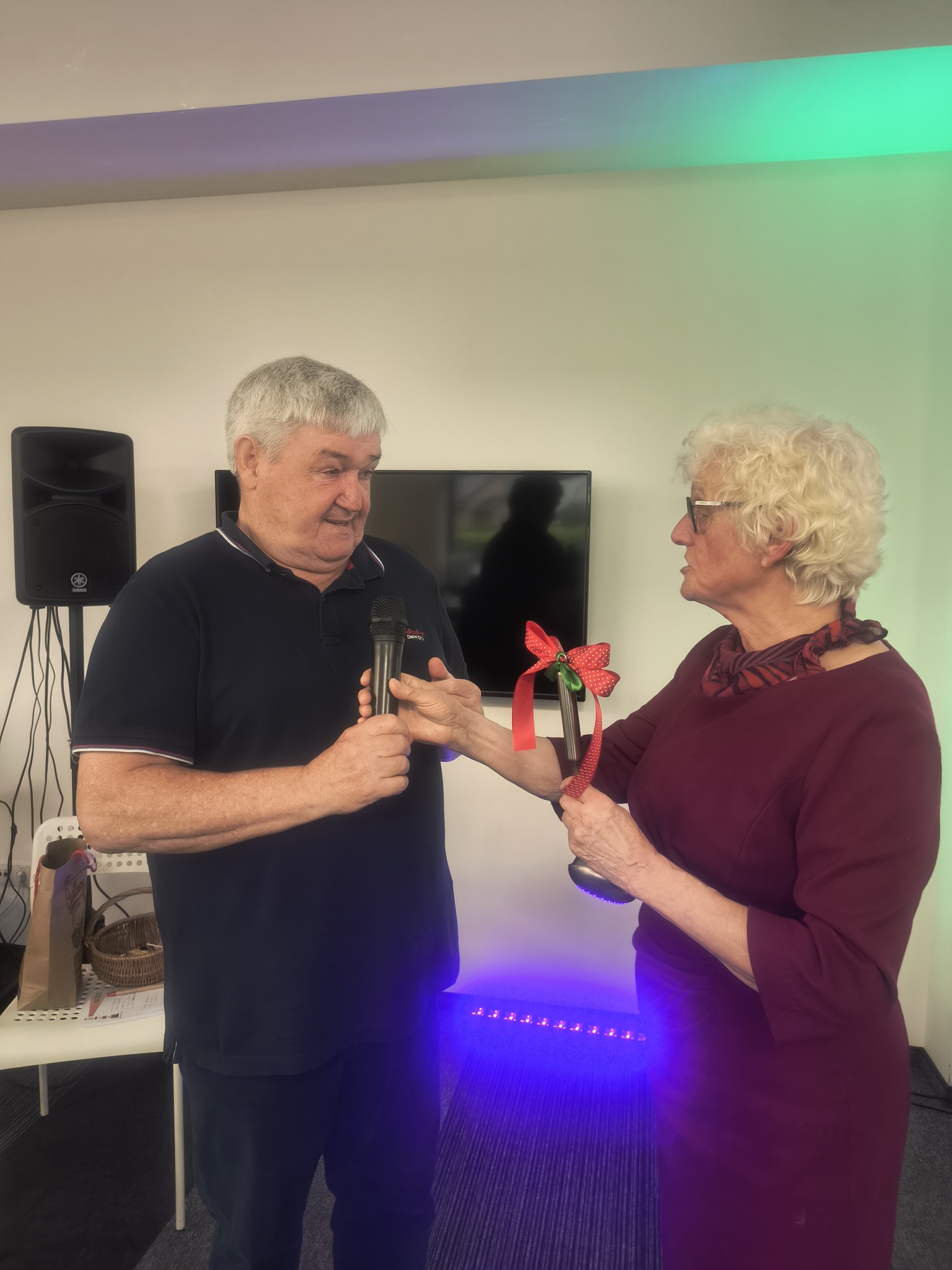To właśnie pani Marianna, symboliczną chochlą – znakiem przekazania odpowiedzialności i kontynuacji tradycji – uroczyście obdarzyła pana Marka Klisiaka, przyszłego gospodarza Dnia Sąsiada w 2026 roku.![]()