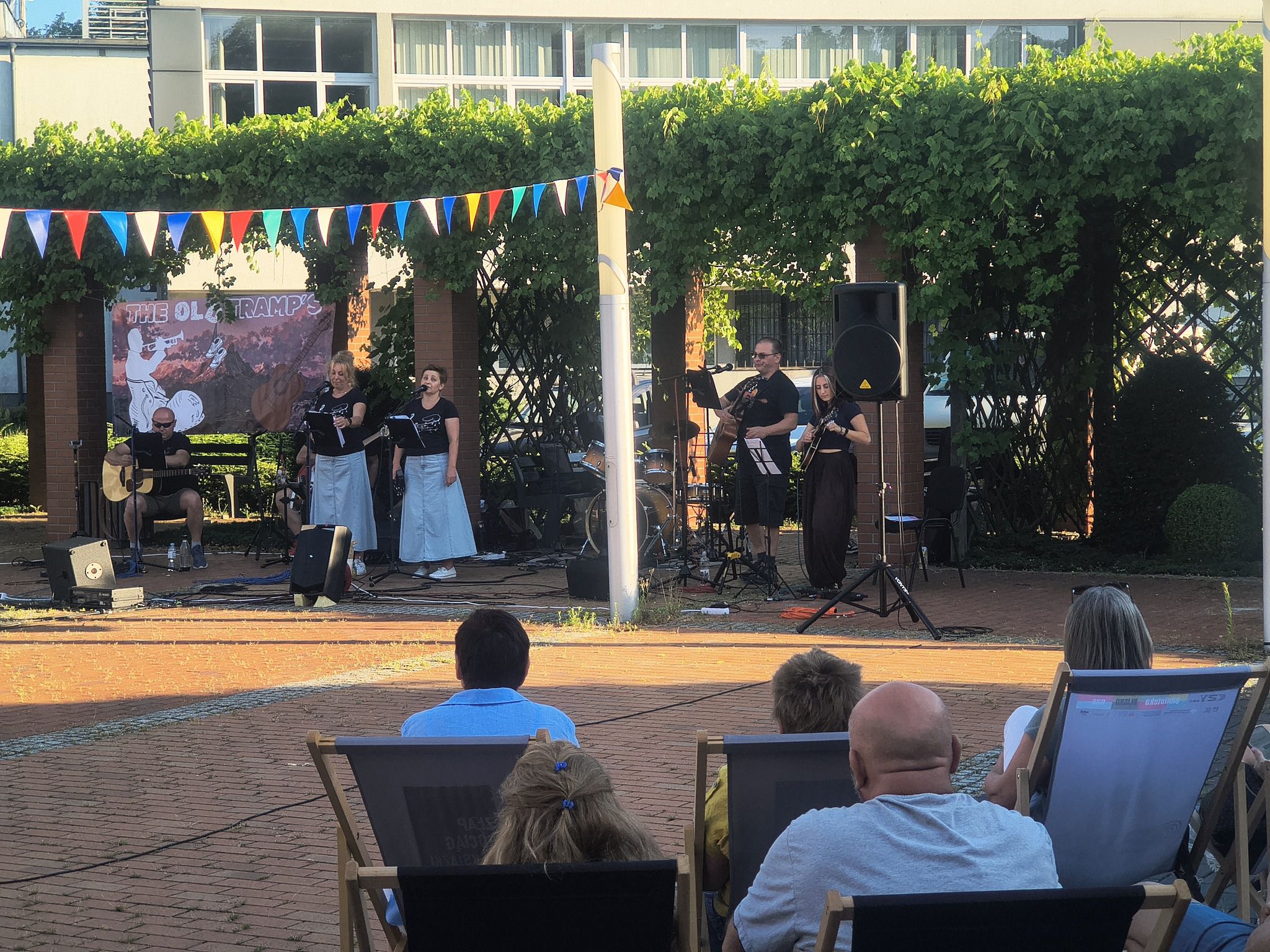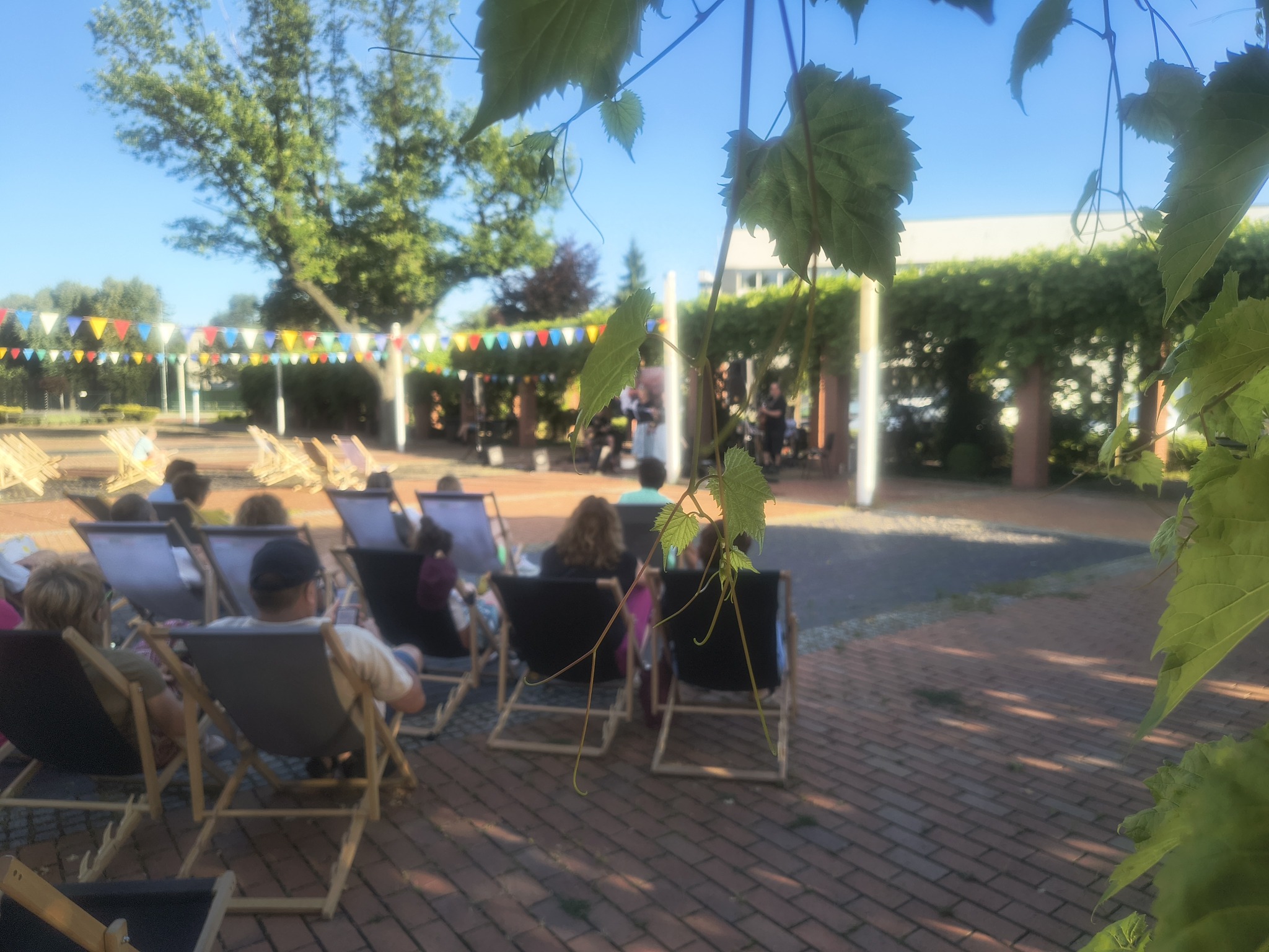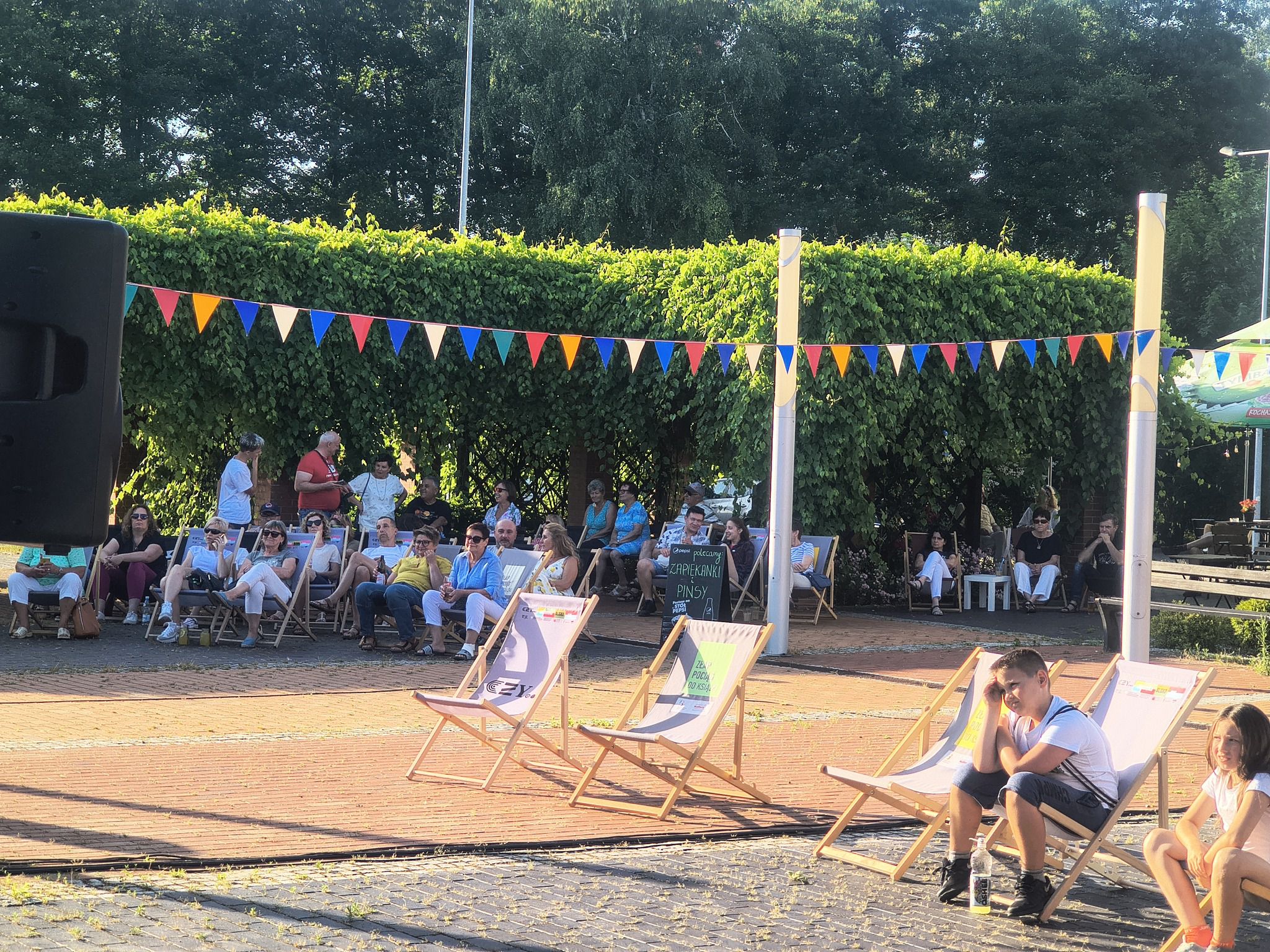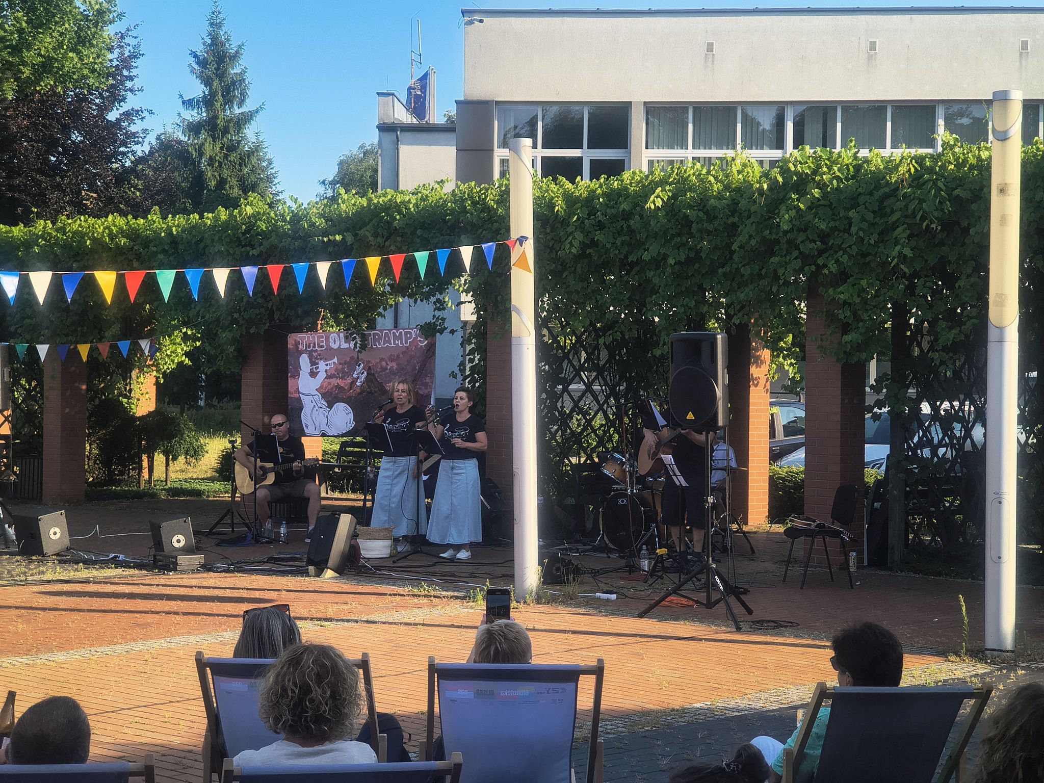 W ciepły, lipcowy wieczór, tuż przed Biblioteka Publiczna MOKSiR w Chełmku, gdy słońce leniwie przesuwało się po dachach, rozbrzmiała muzyka – żywa, szczera, pełna wspomnień...