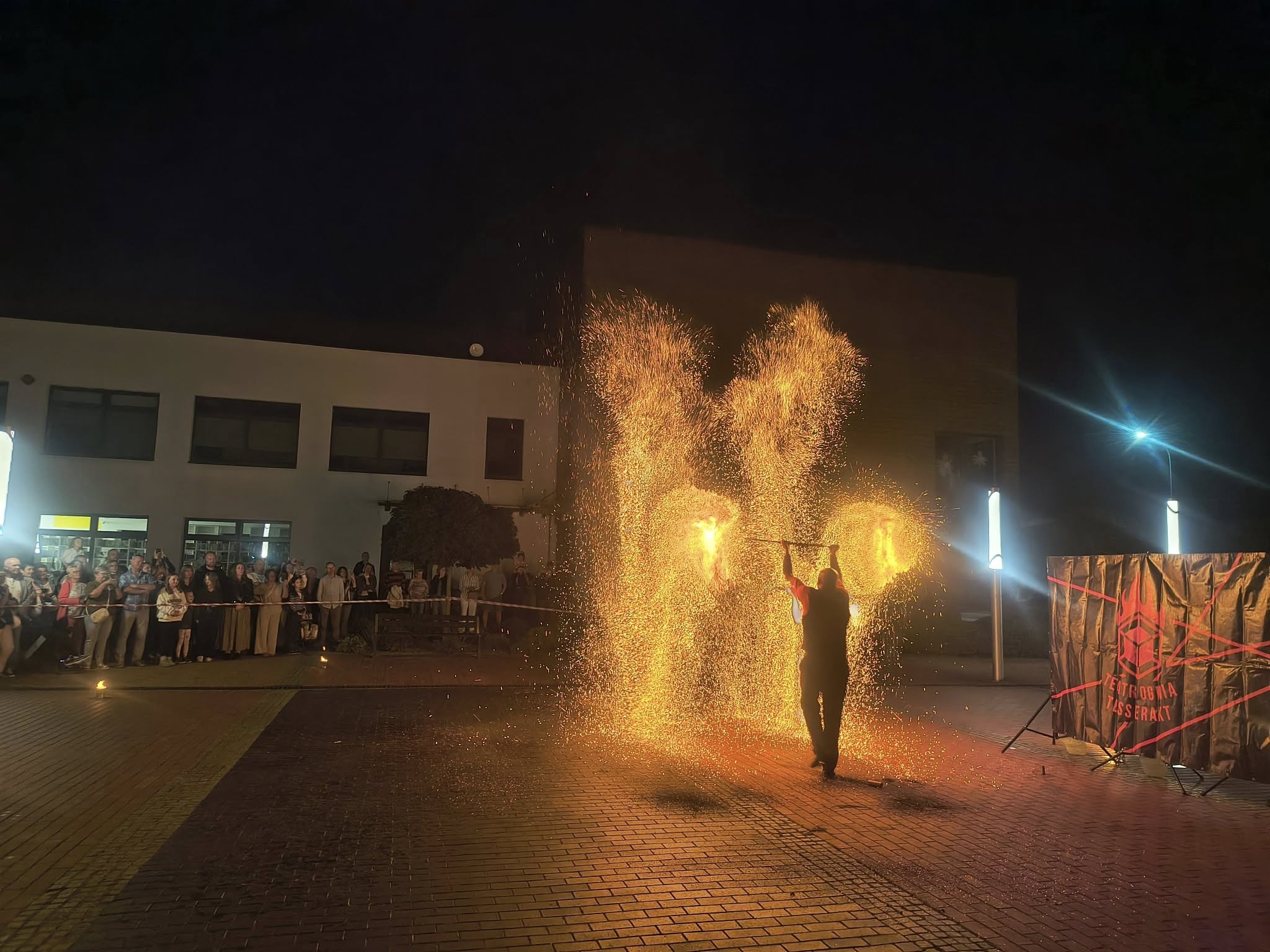 Wieczór zakończył się w prawdziwie magiczny sposób – pokazem fireshow w wykonaniu Teatru Ognia Teserakt, przy którym czuwali nasi niezawodni strażacy z OSP Chełmek. Magia płomieni, iskry w powietrzu i niezwykłe widowisko sprawiły, że jubileusz zapisze się w pamięci na długo.