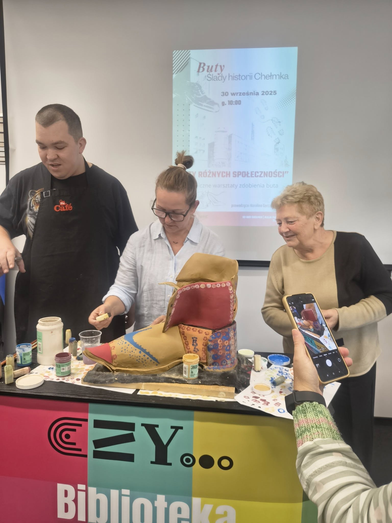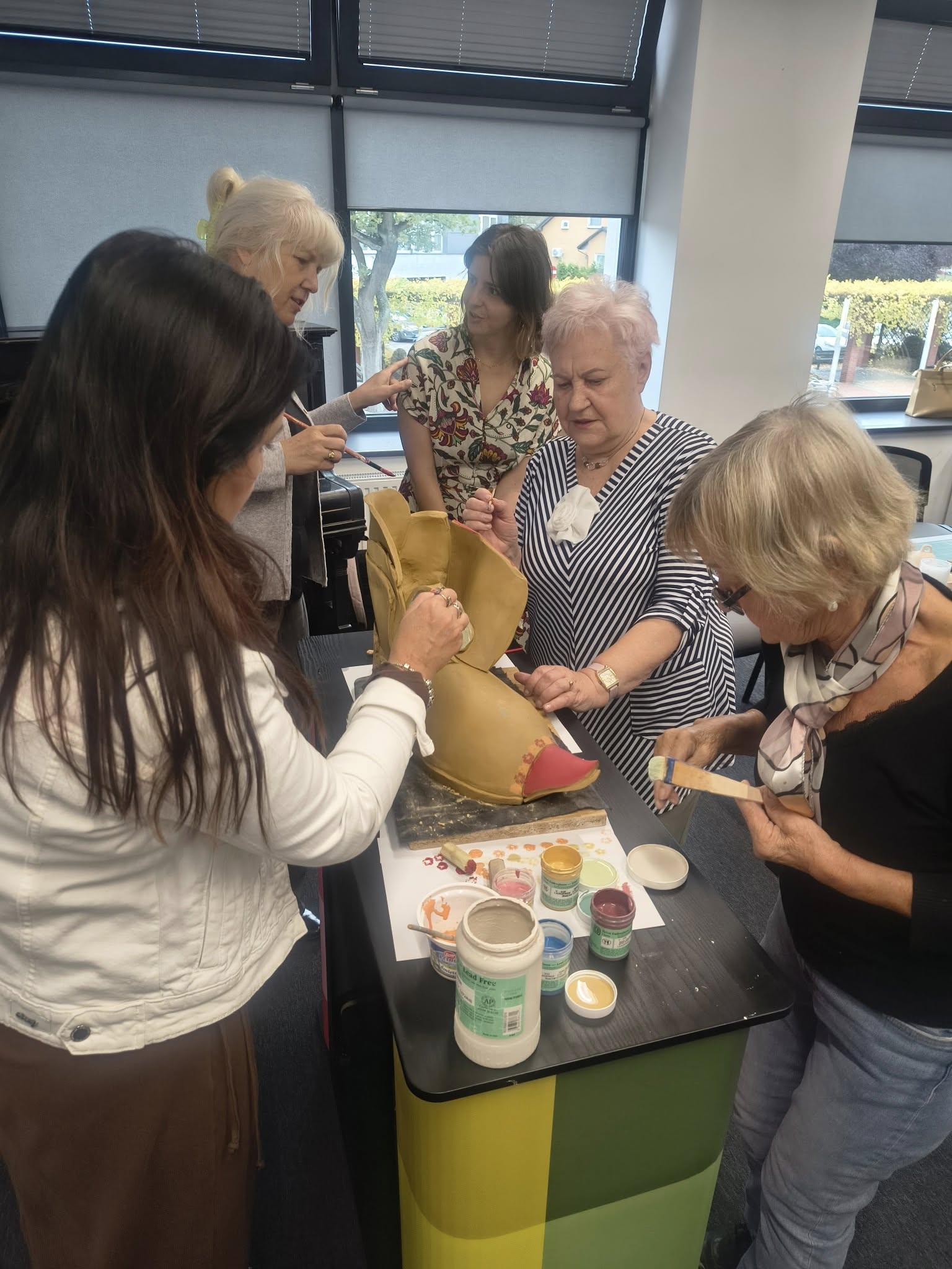Spotkanie, kończące cykl warsztatów „Buty – ślady historii Chełmka”, było świętem wspomnień, twórczej pracy i lokalnej tożsamości. Uczestnicy Fundacja im. Brata Alberta Warsztat Terapii Zajęciowej w Chełmku oraz Środowiskowy Dom Samopomocy Chełmek wraz z kierownikami i opiekunami zdobili ceramiczny but, symbol naszego miasta. ![]()