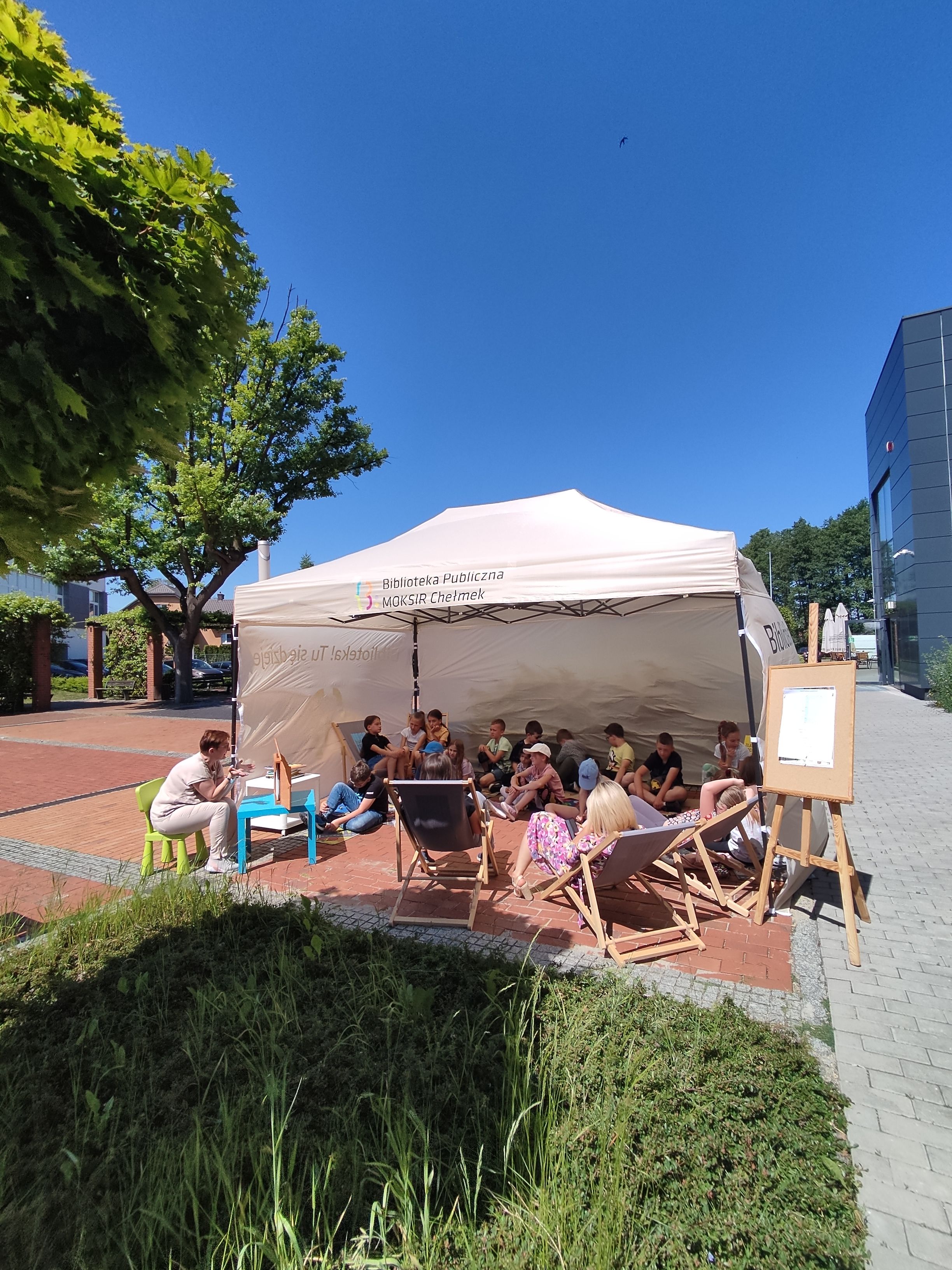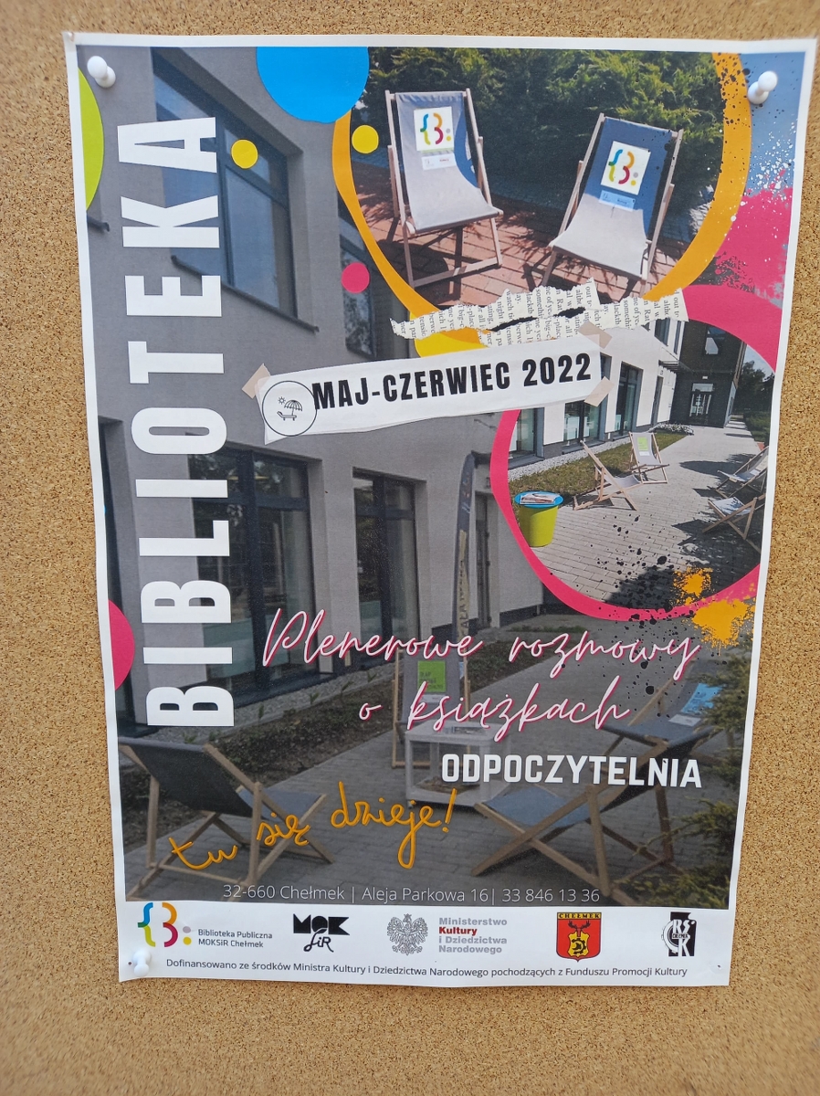 W miesiącach maj i czerwiec odbywały się w przestrzeni około bibliotecznej „Plenerowe rozmowy o książkach” w ramach projektu „Biblioteka! Tu się dzieje”, który otrzymał dofinansowanie ze środków Ministra Kultury i Dziedzictwa Narodowego pochodzących z Funduszu Promocji Kultury – państwowego funduszu celowego.