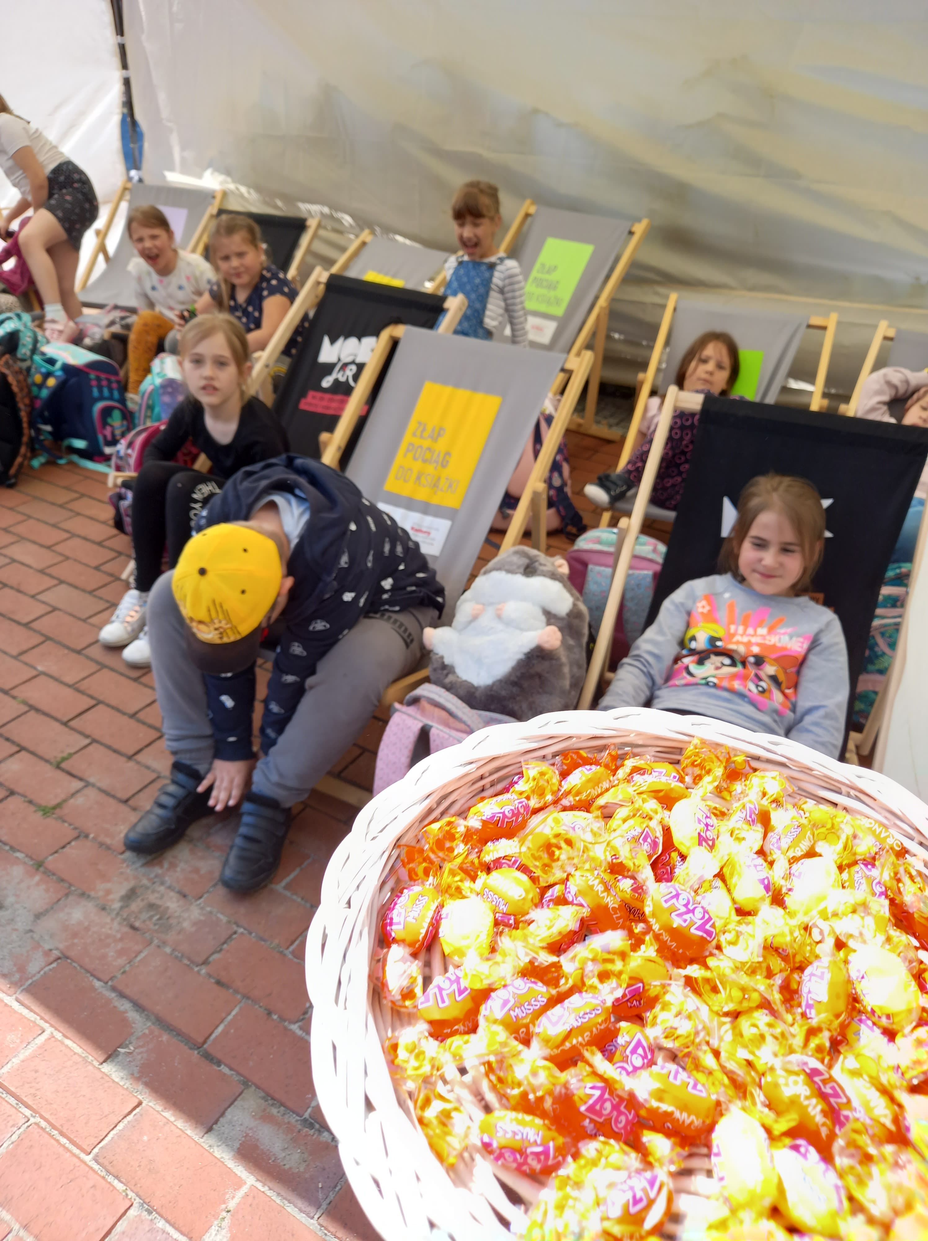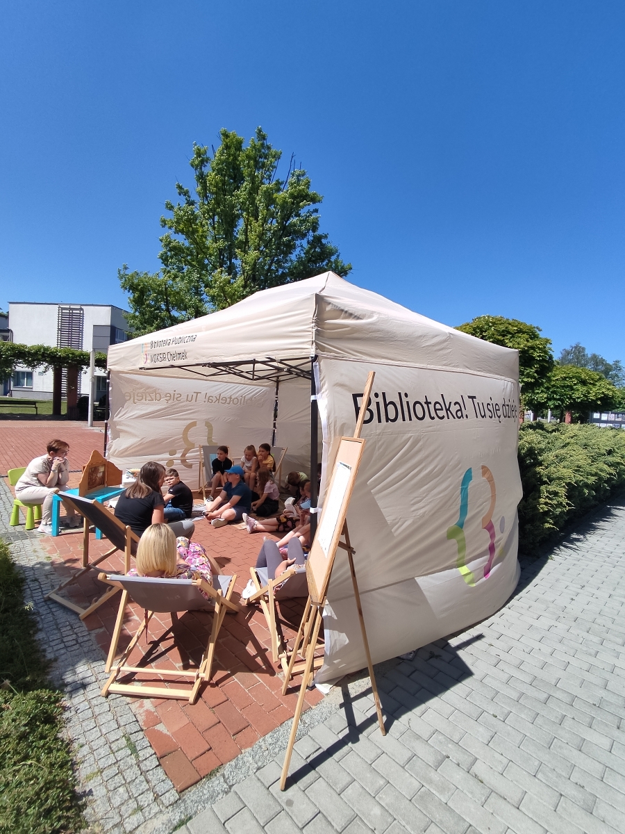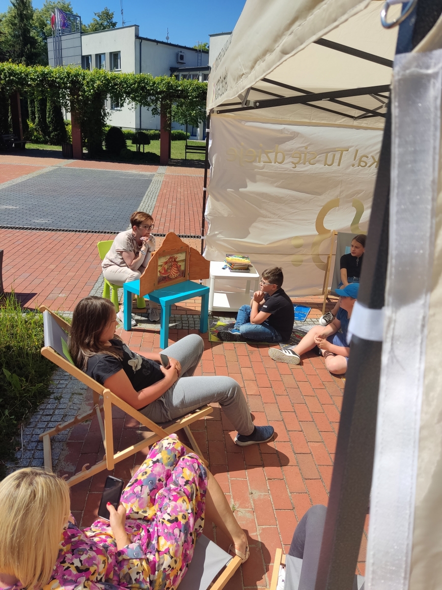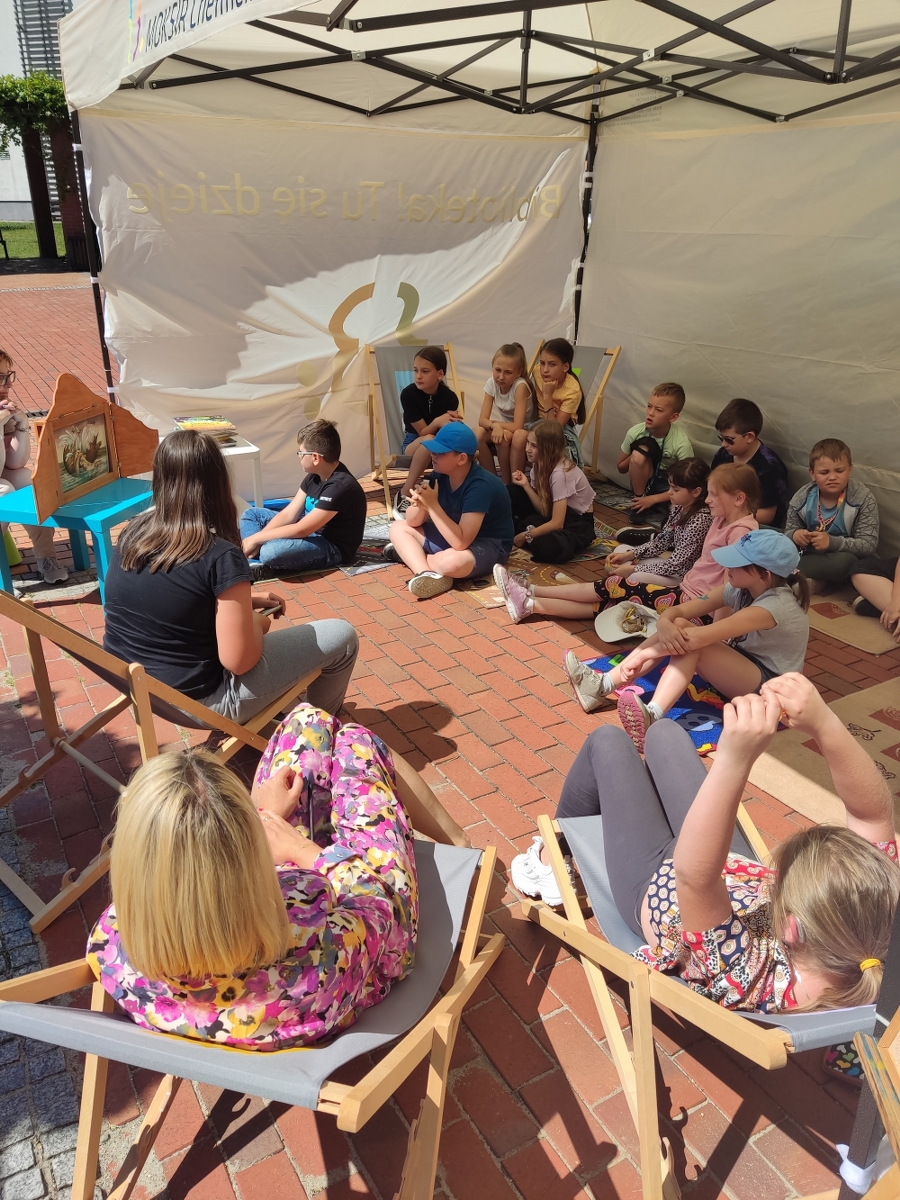 Odwiedzały nas liczne grupy zarówno dzieci jak i dorosłych w „literackim namiocie” poruszaliśmy różne wątki literackie, czytaliśmy, malowaliśmy i wspólnie rozmawialiśmy.
