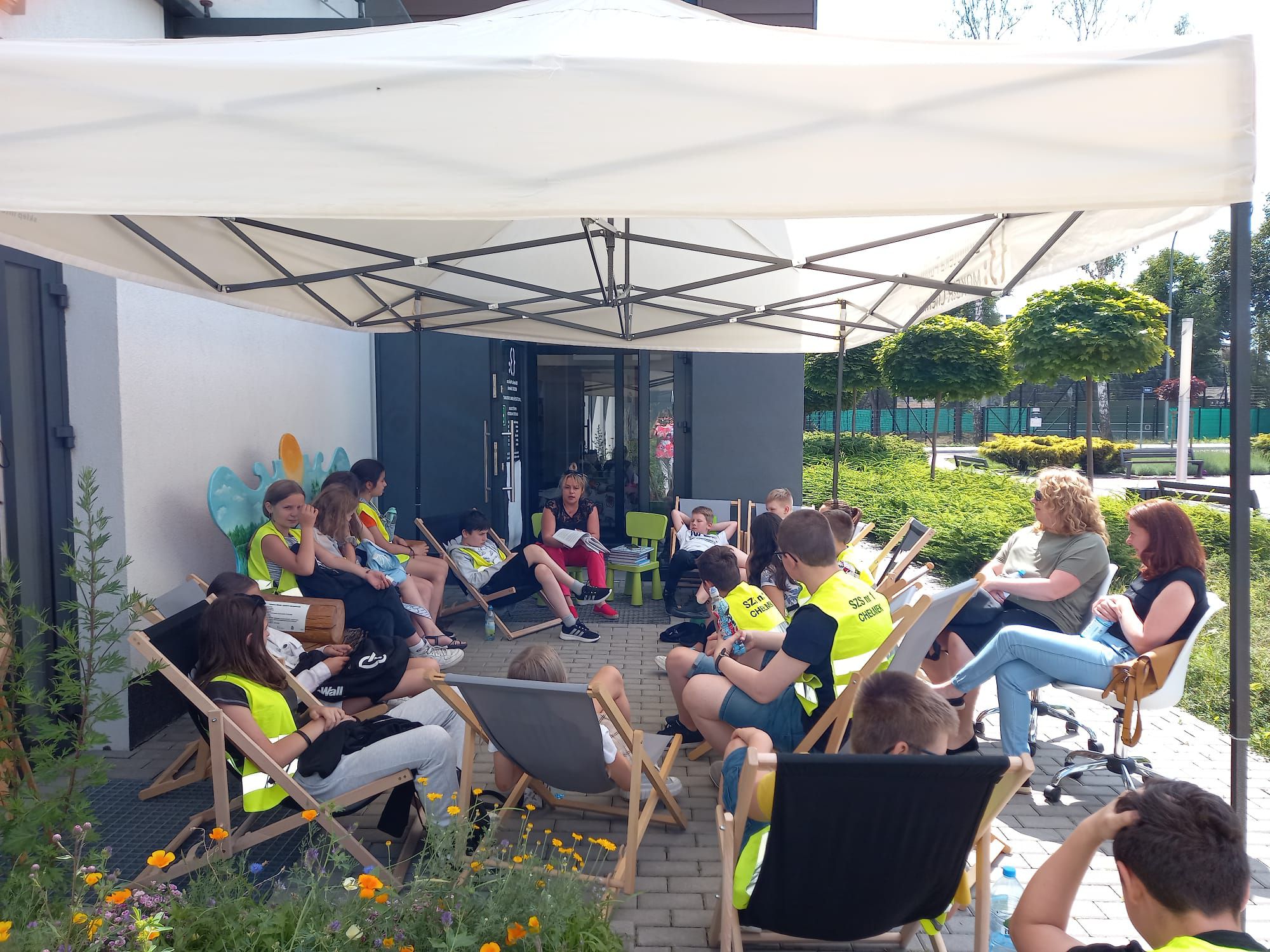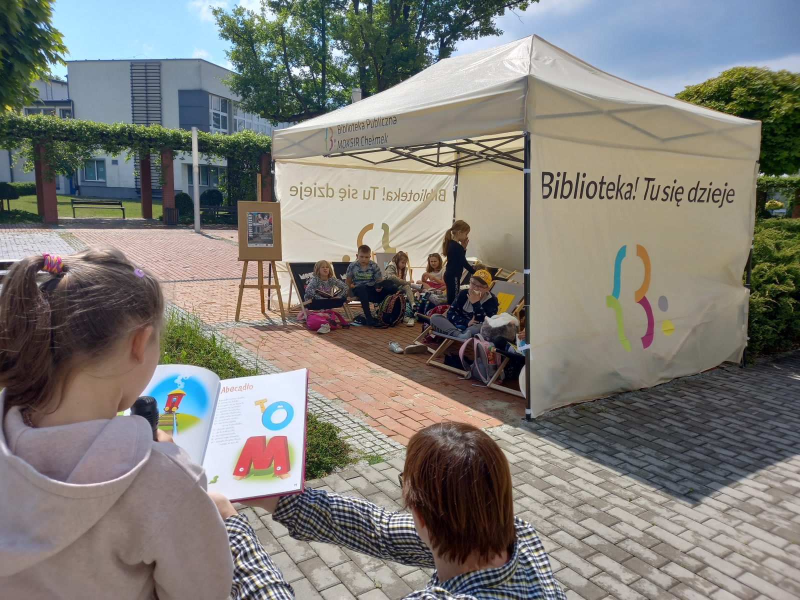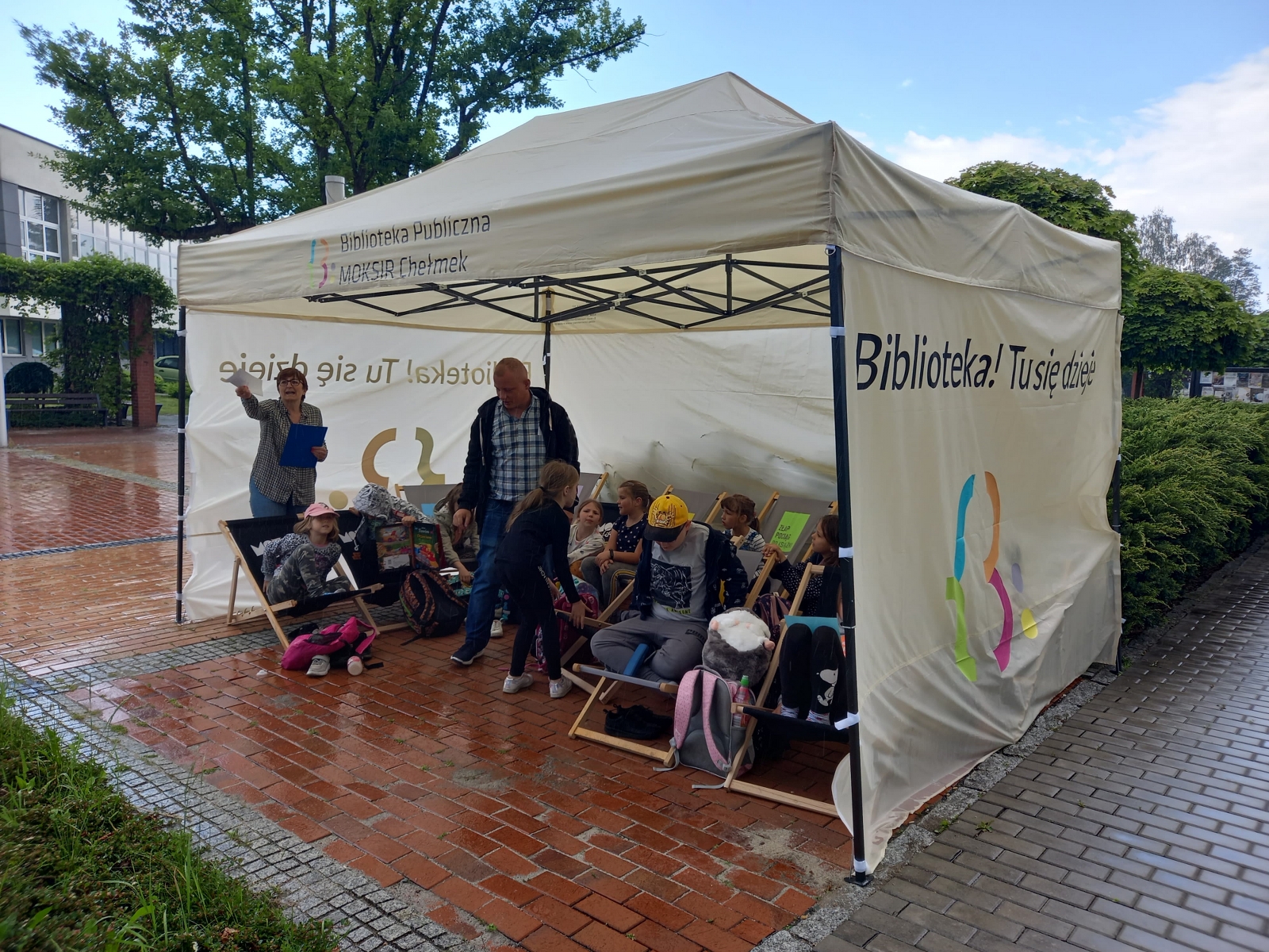 Odwiedzały nas liczne grupy zarówno dzieci jak i dorosłych w „literackim namiocie” poruszaliśmy różne wątki literackie, czytaliśmy, malowaliśmy i wspólnie rozmawialiśmy.